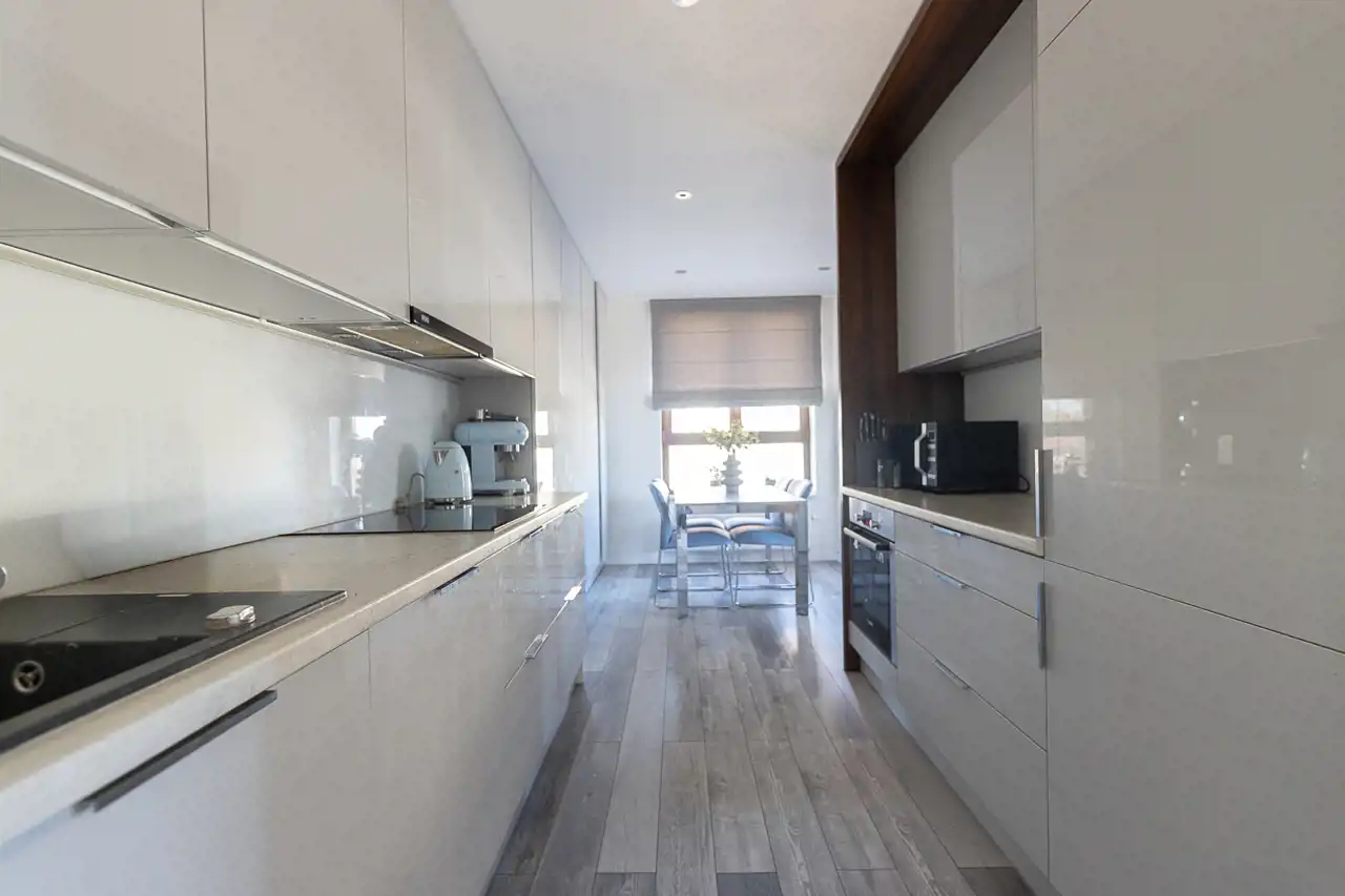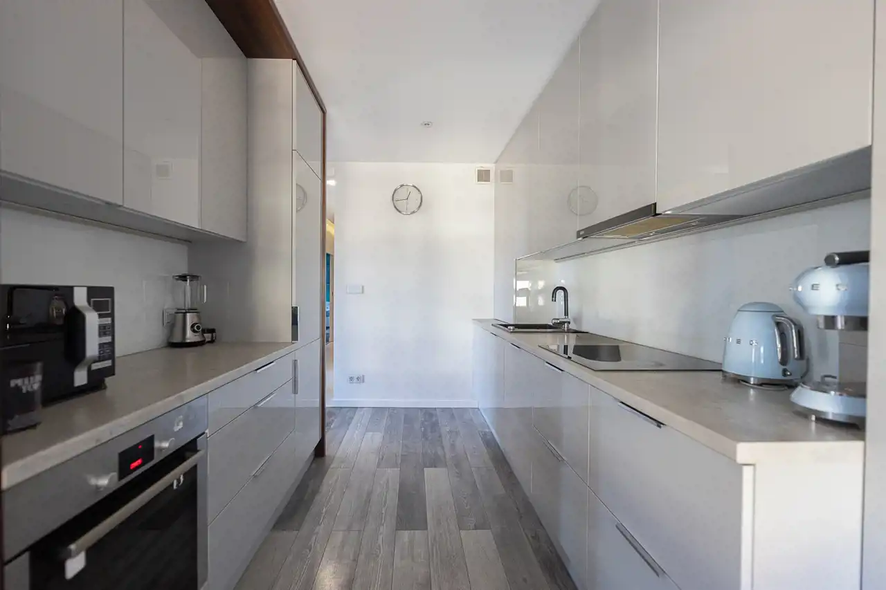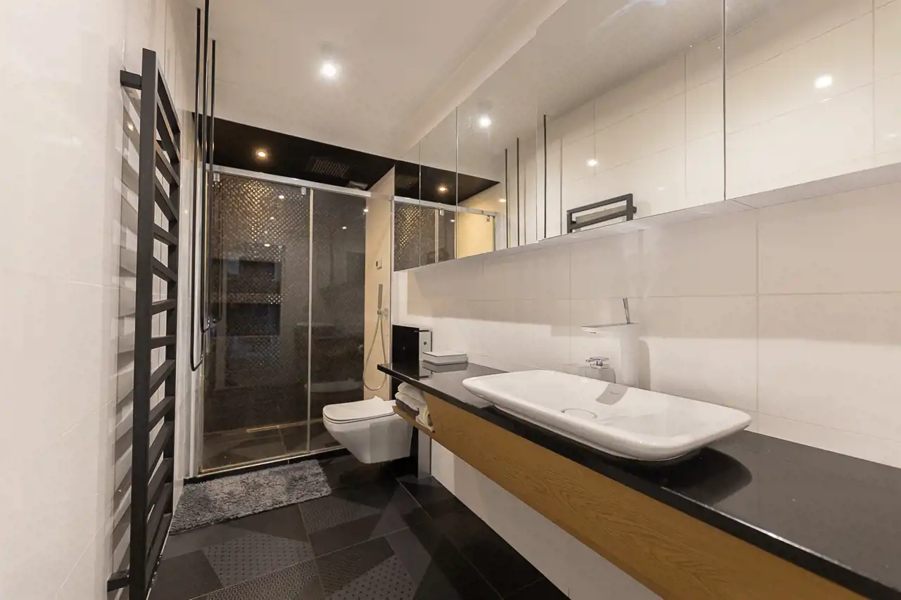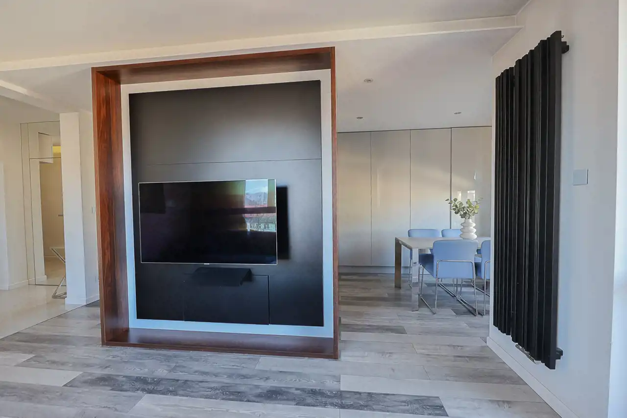Mieszkanie zostało wykończone w bardzo wysokim standardzie, z dbałością o detale oraz funkcjonalność. Wnętrze oferuje liczne zabudowy oraz dużą ilość miejsca do przechowywania, co zapewnia wygodę codziennego użytkowania.