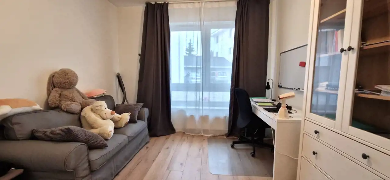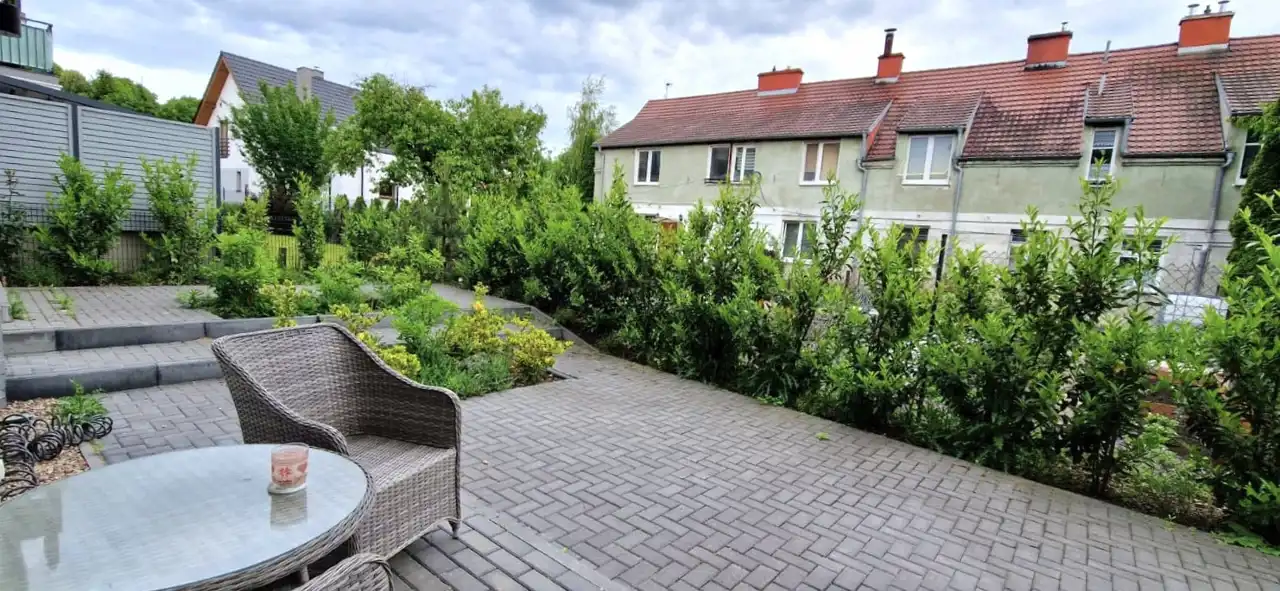 Na powierzchnie 92m2 znajdziemy 3 duże i ustawne pokoje, przestronny salon połączony z kuchnia, łazienkę razem z WC, osobno WC oraz korytarz. Powierzchnia ogródka to około 150 m2. Garaż bezpośrednio w bryle budynku. W całym mieszkaniu zamontowane zostały rolety antywłamaniowe.