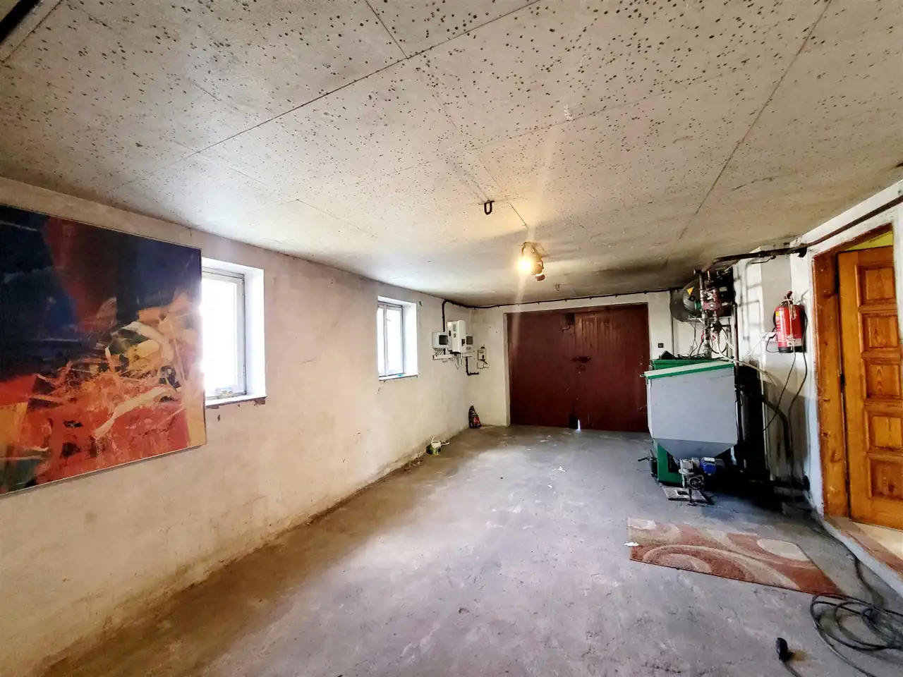 Poniżej znajduje się piwnica a w niej urządzono niezależne mieszkanie lub pomieszczenia do prowadzenia działalności gospodarczej: dwa pokoje, kuchnia, łazienka z wc i prysznicem. Dodatkowo na tym poziomie znajduje się garaż, który można przerobić na salon.
