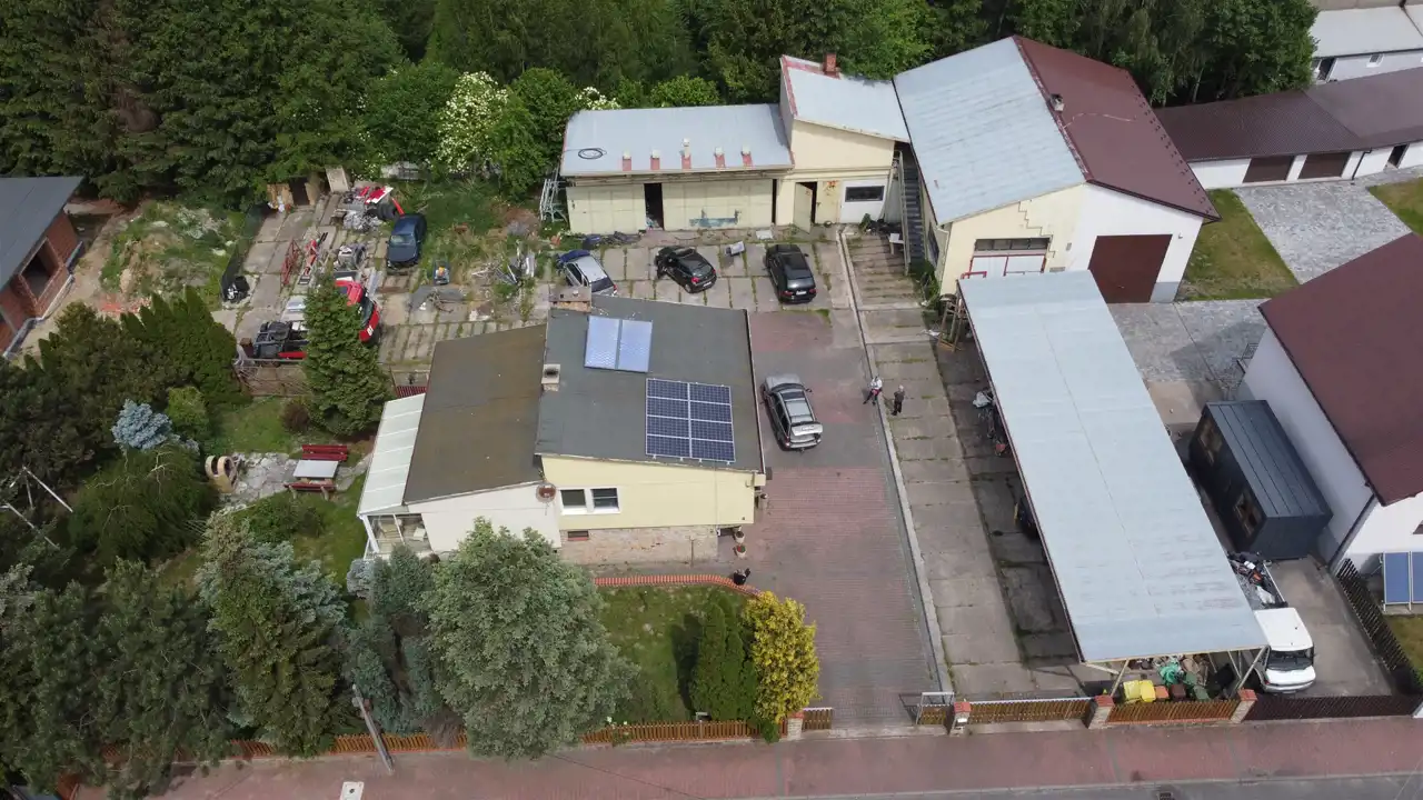 Na posesji można prowadzić działalność gospodarczą, utwardzony duży plac oraz budynki murowane ( jeden z dużymi wrotami) o pow. 117m2, drugi budynek dwukondygnacyjny- biurowy z warsztatem o pow. zabudowy 90m2 i dodatkowo wiata o pow. 125m2. To idealne miejsce dla majsterkowicza (np. pracownia, warsztat samochodowy, wulkanizacja itp.)