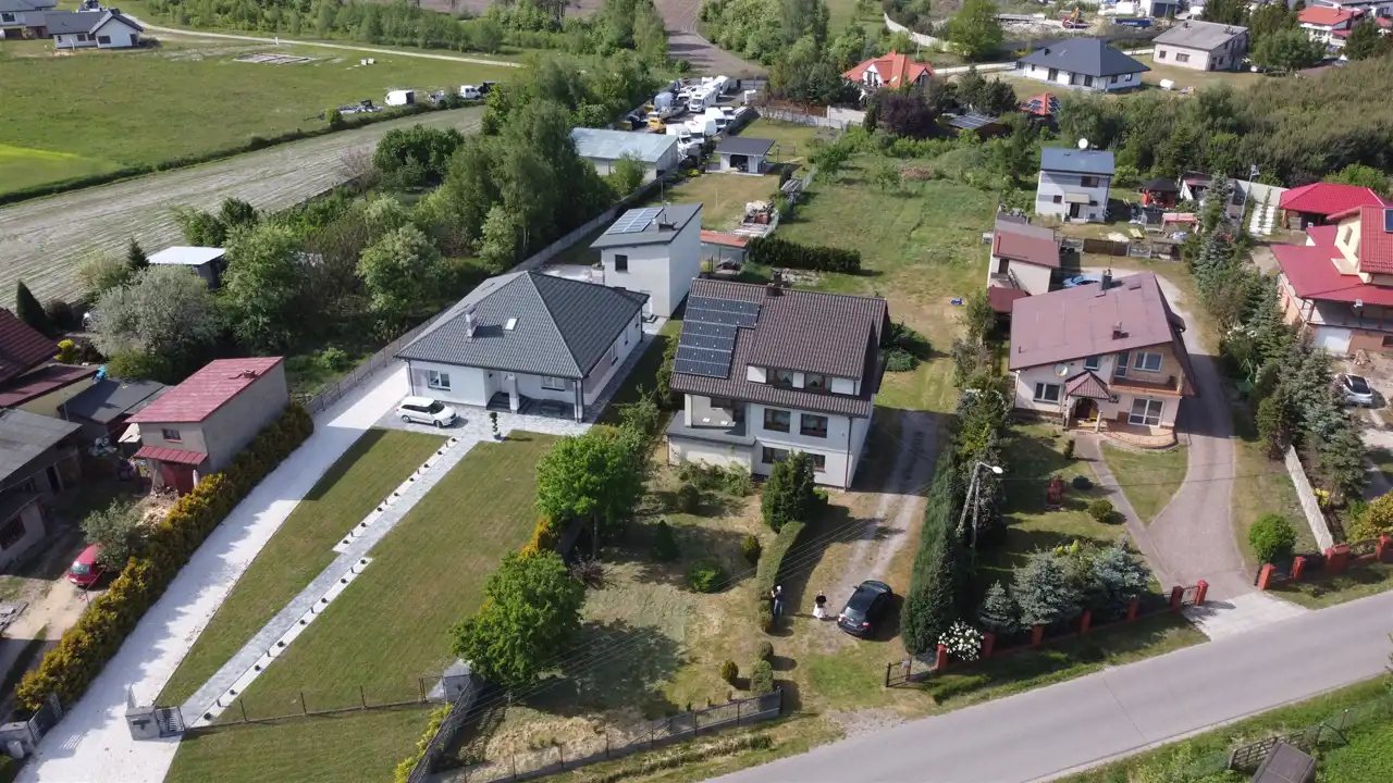 Budynek z 2003roku posadowiony jest na zagospodarowanej, płaskiej działce o pow. 2648m2. Działka ogrodzona z licznymi nasadzeniami.