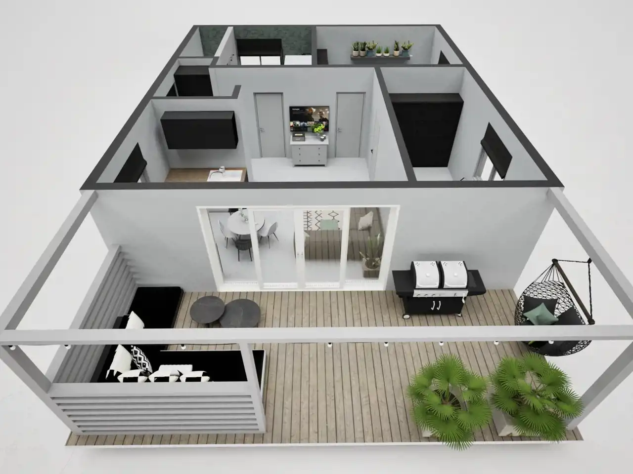 Zaprojektowany budynek będzie składał się z pokoju dziennego z aneksem kuchennym, dwóch sypialni, pokoju, łazienki z wc, pomieszczenia gospodarczego oraz korytarza i holu. Na tym etapie możesz zaplanować i wykończyć wymarzony dom jak z bajki!
