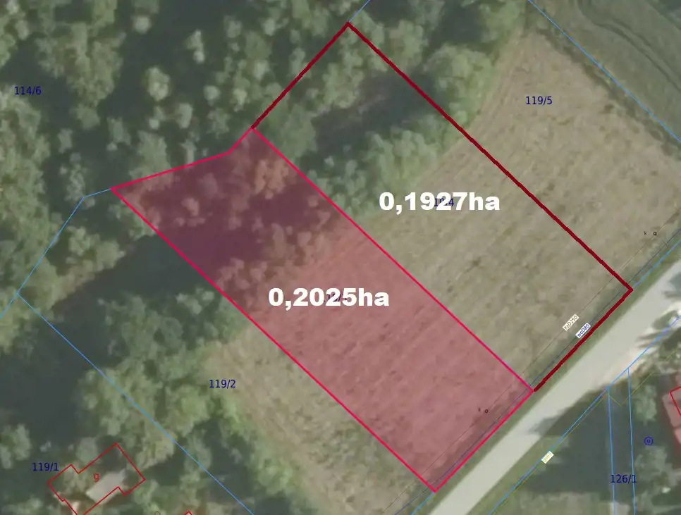 - 0,1927ha: szerokość 26,5m, długość ok. 72,5m - cena 69.500zł,