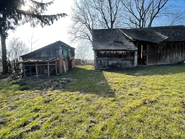 - Na działce znajduje się również murowano-drewniany budynek gospodarczy - do remontu oraz stodoła - do rozbiórki, kryta dachówką betonową.
