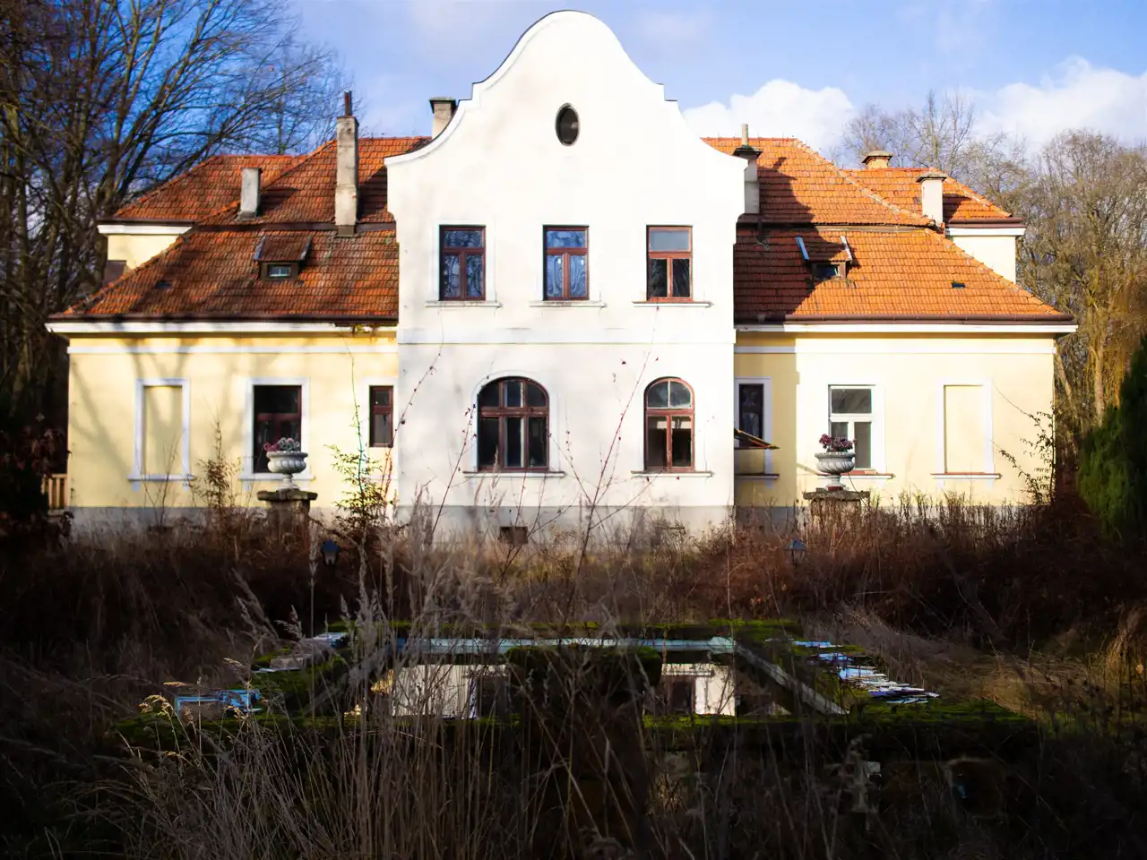Rezydencja z ogromnym potencjałem inwestycyjnym, otoczona przepięknym parkiem i ogrodem, w którym znajdują się drzewa pomnikowe, rzeźby, fontanny, oraz drewniany skansen o powierzchni 80 m². Działka jest w pełni zagospodarowana i ogrodzona, z licznymi elementami małej architektury, stawem, dużą altaną grillową oraz punktem widokowym oferującym zachwycające widoki.
