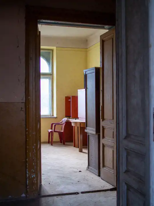- Drewniane okna (częściowo wymienione na plastikowe),