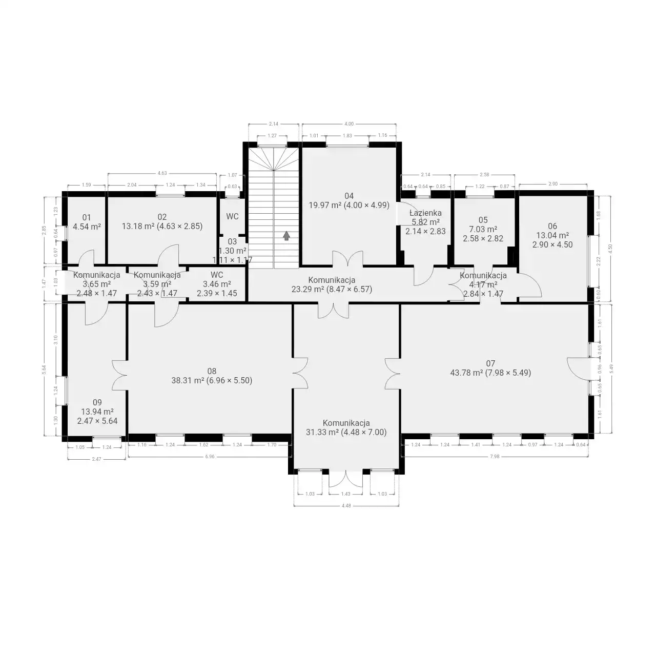 - Piętro: 6 pokoi z możliwością zaadaptowania łazienki.