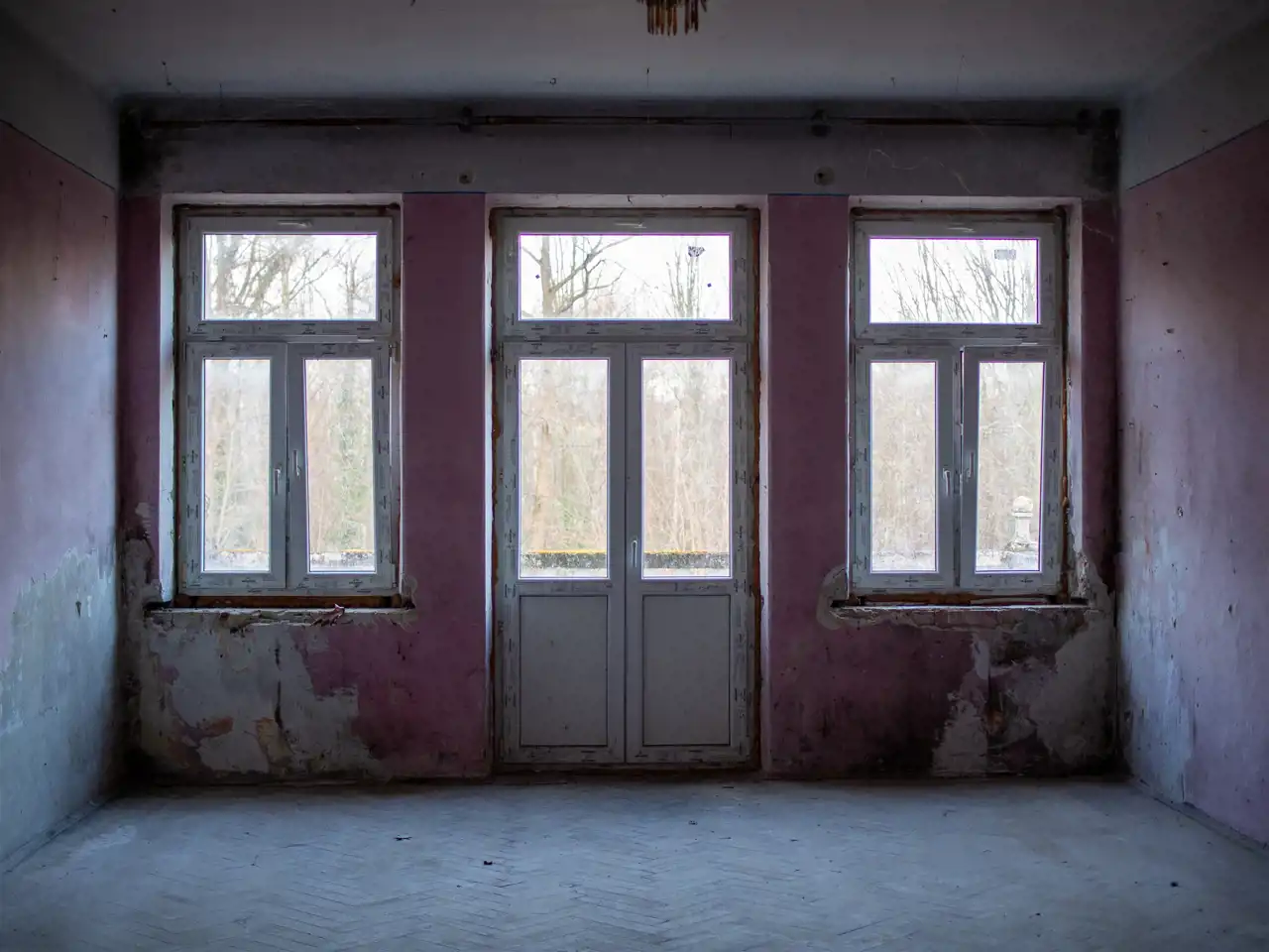 - Drewniane okna (częściowo wymienione na plastikowe),
