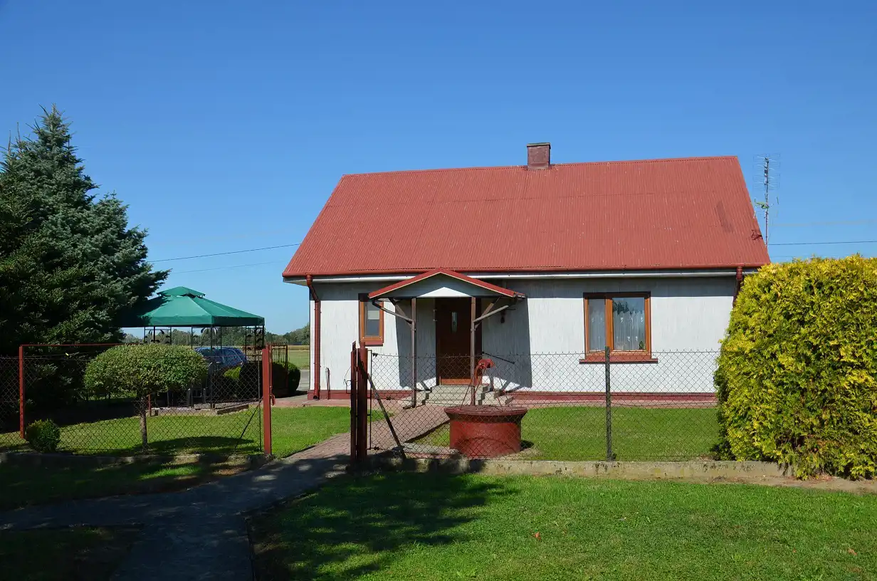 Dom z lat 60-tych, wybudowany w technologii drewnianej, kryty blachą, wymagający remontu, ale w pełni funkcjonalny i nadający się do zamieszkania od zaraz. To doskonała baza, by stworzyć ciepły, rodzinny dom według własnej wizji, rozpocząć nowy etap życia, a prace modernizacyjne wykonywać stopniowo.