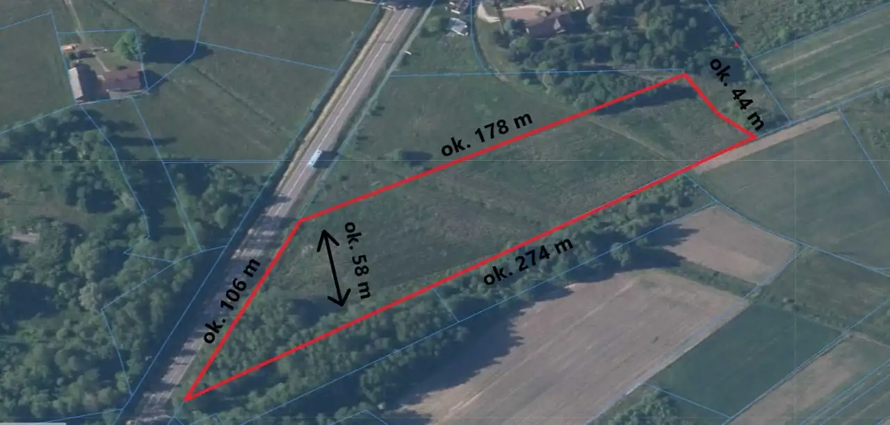 - Wymiary działki: ok. 58x178x44x274 m.