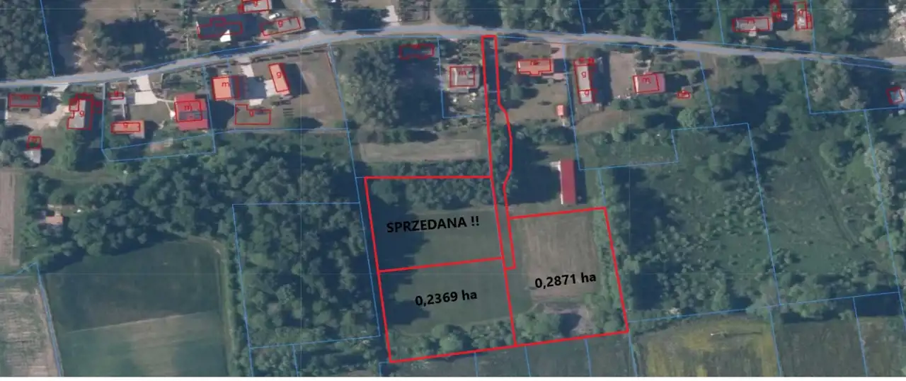 - Powierzchnia poszczególnych działek wynosi: 0,2369 ha, 0,2871 ha