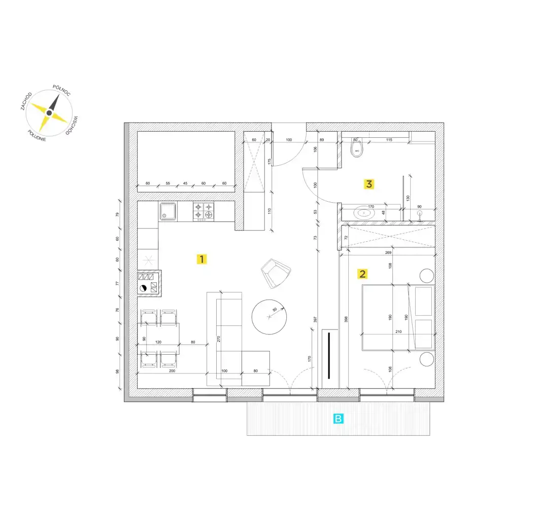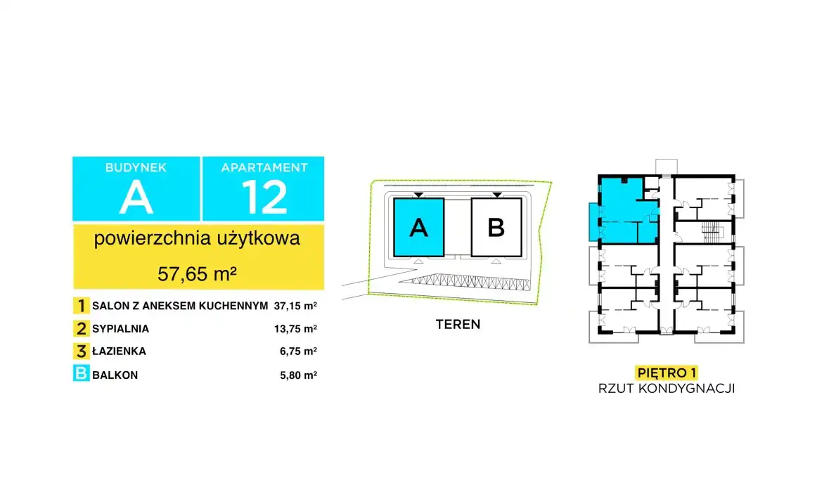 - Charakterystyka mieszkania 57.65 m2, 2 pokoje