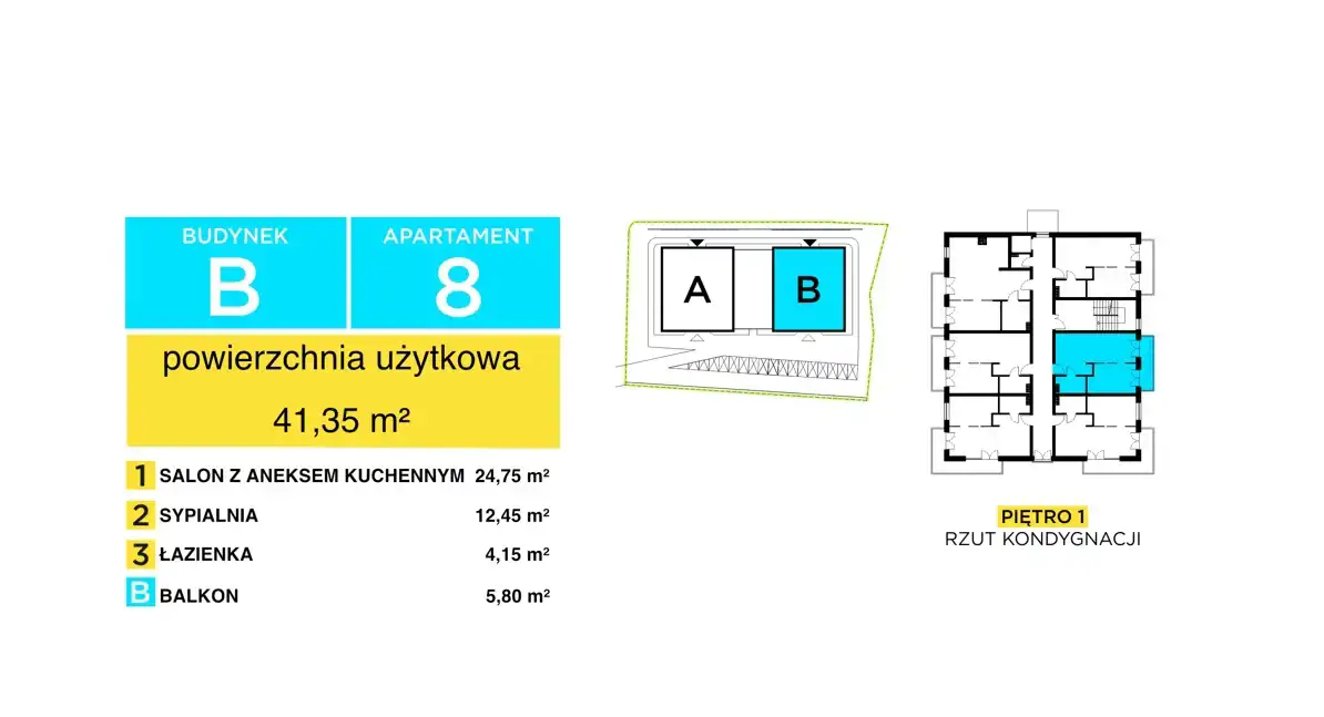 - Charakterystyka mieszkania 41.35 m2, 2 pokoje