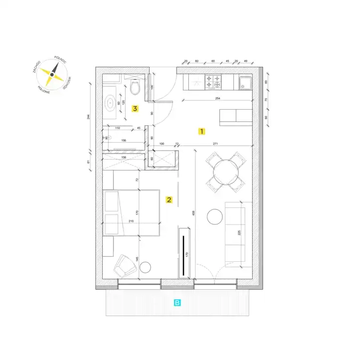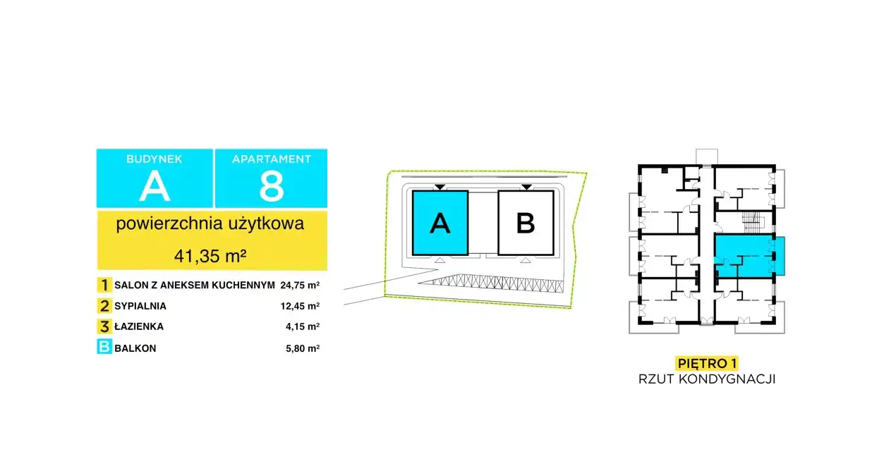 - Charakterystyka mieszkania 41.35 m2, 2 pokoje