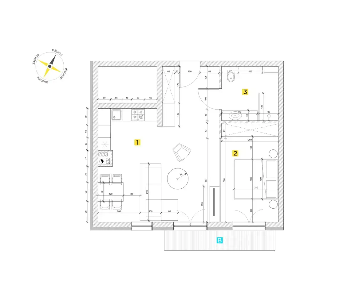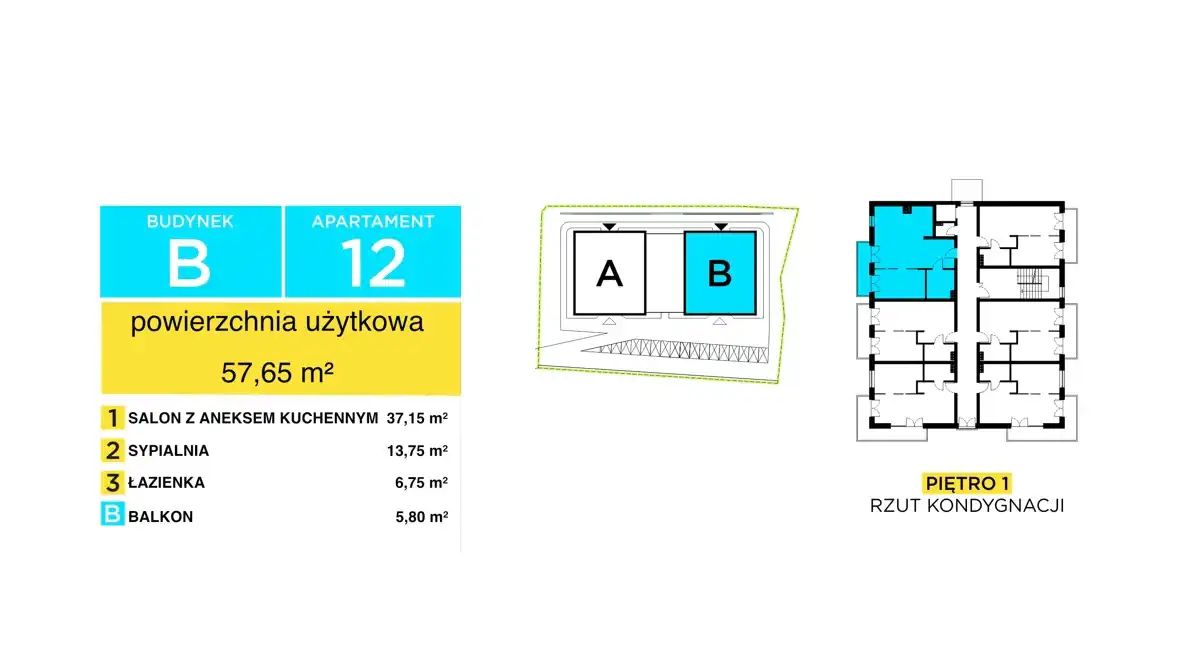 - Charakterystyka mieszkania 57.65 m2, 2 pokoje