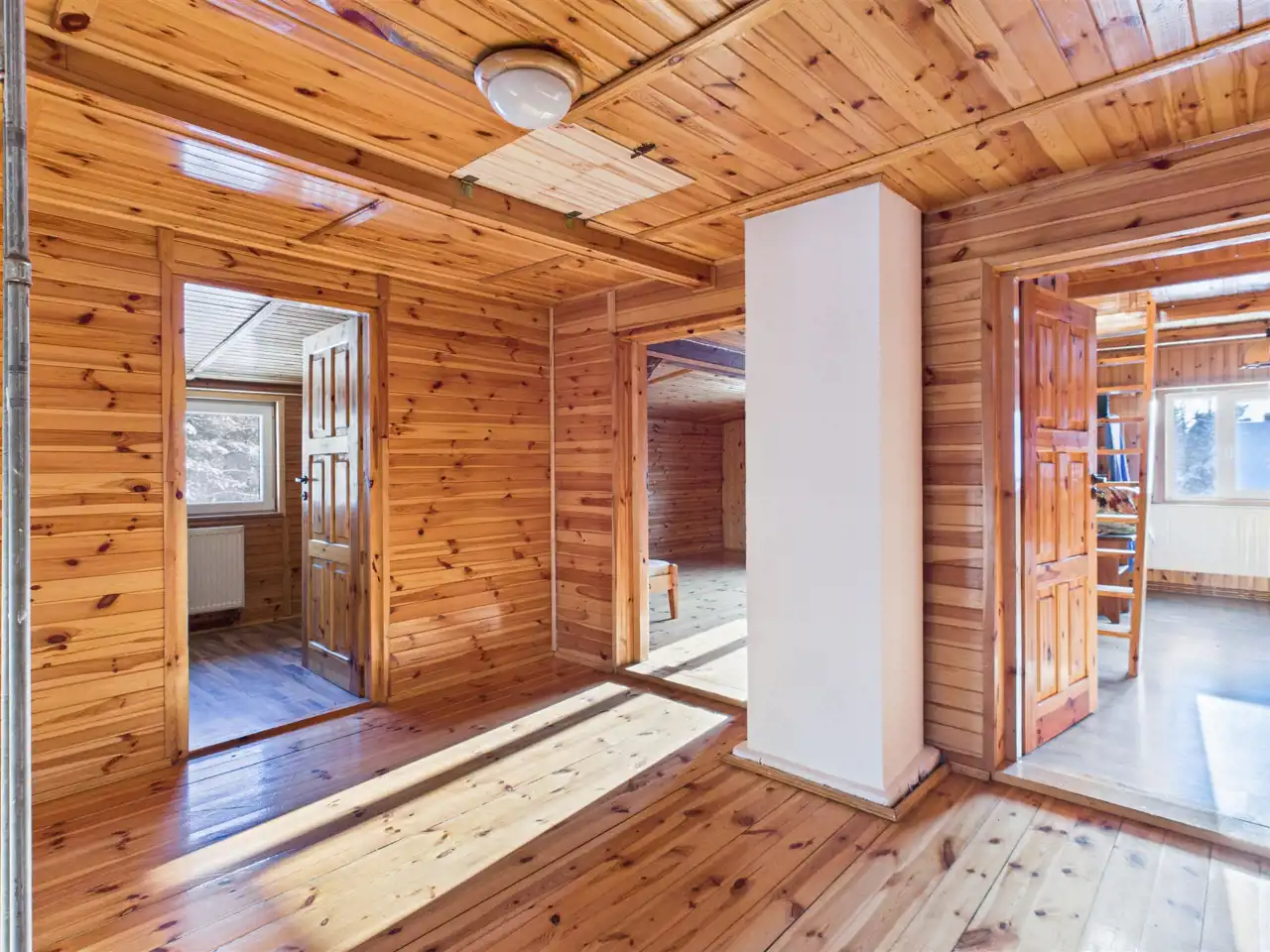 Dom jest częściowo umeblowany, w pokojach są łóżka i meblościanki, a w salonie duży stół i dwa narożniki. Jest dobrze ocieplony. Posiada centralne ogrzewanie z piecem na drewno. Woda z sieci gminnej.