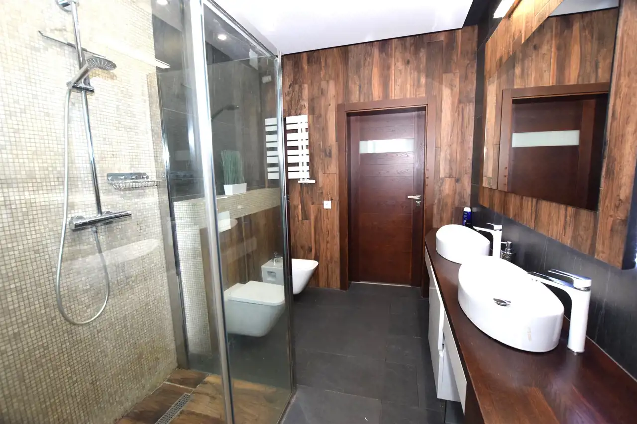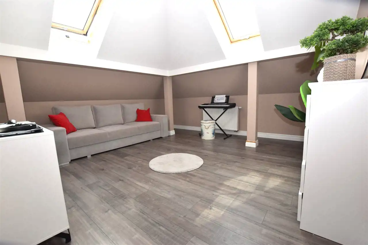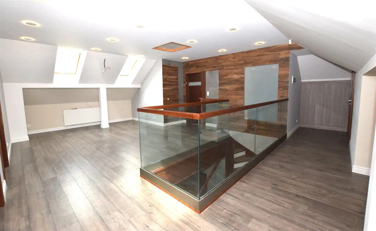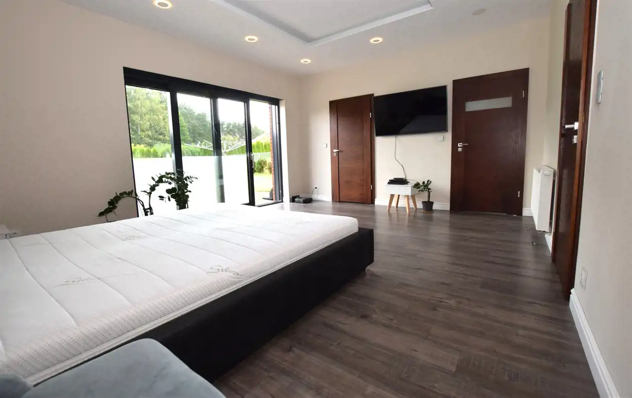 Budynek o powierzchni użytkowej (po odjęciu skosów) 170,53m2, usytuowany na pięknie zagospodarowanej działce o powierzchni 1714m2. Charakteryzuje się wysokim standardem wykończenia przy użyciu materiałów najwyższej jakości oraz dużą dbałością o detale. Całość urządzona z gustem i doskonale się komponująca. Własny ogród, dwustanowiskowy garaż, wykostkowany podjazd i duży taras. W oknach na parterze rolety zewnętrzne. Zamontowany alarm w budynku, monitoring na zewnątrz.