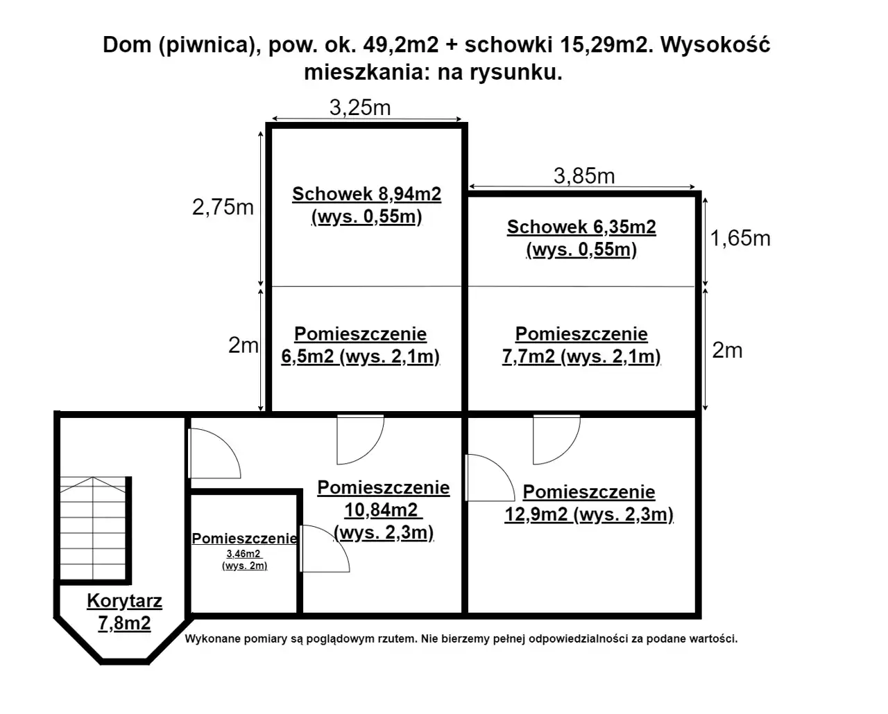 - Pomieszczenie gospodarcze (wolnostojące) – 23,28m2 [6,65m x 3,5m]. Wysokość 2,7m.