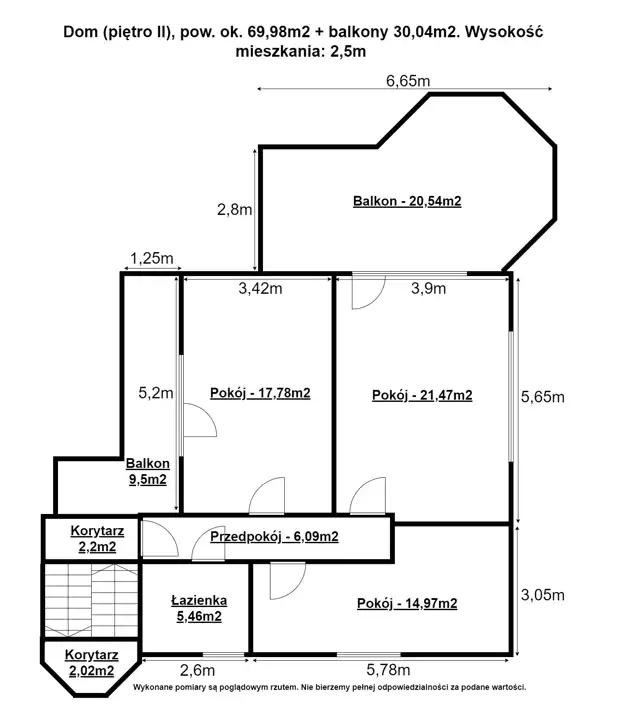 - trzech balkonów o łącznej powierzchni 34,49 m².