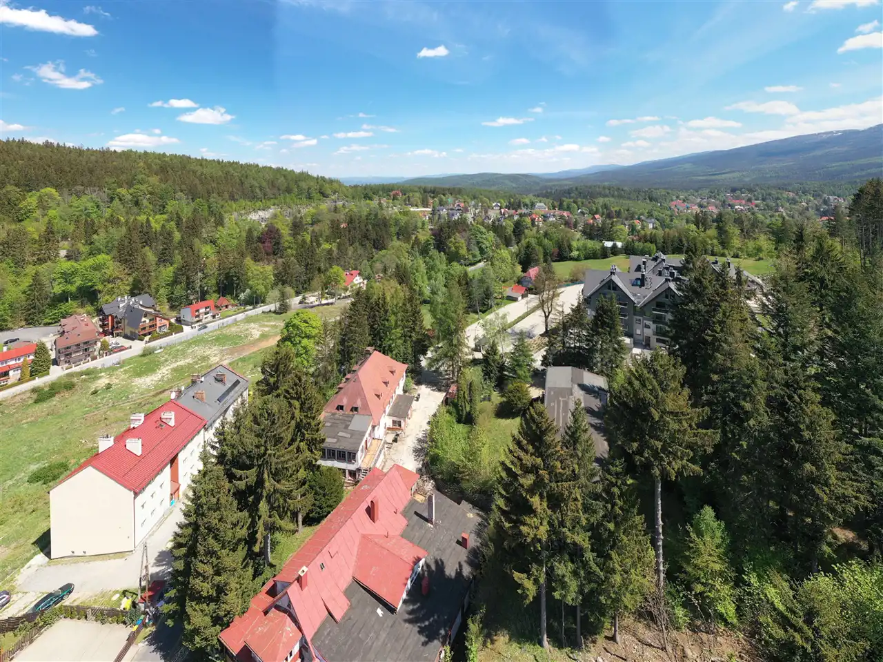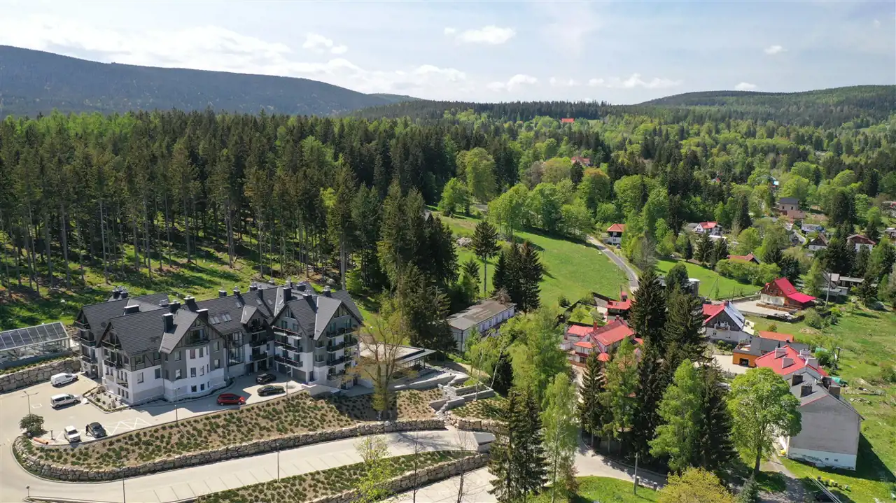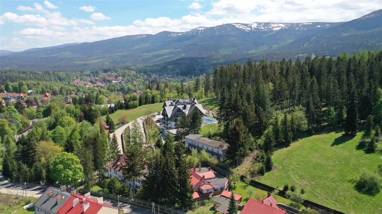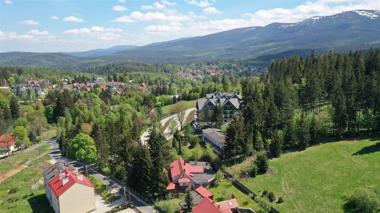 Położenie 750 metrów od centrum Szklarskiej Poręby stanowi o atrakcyjności lokalizacji, dojazd drogą asfaltową oświetloną.