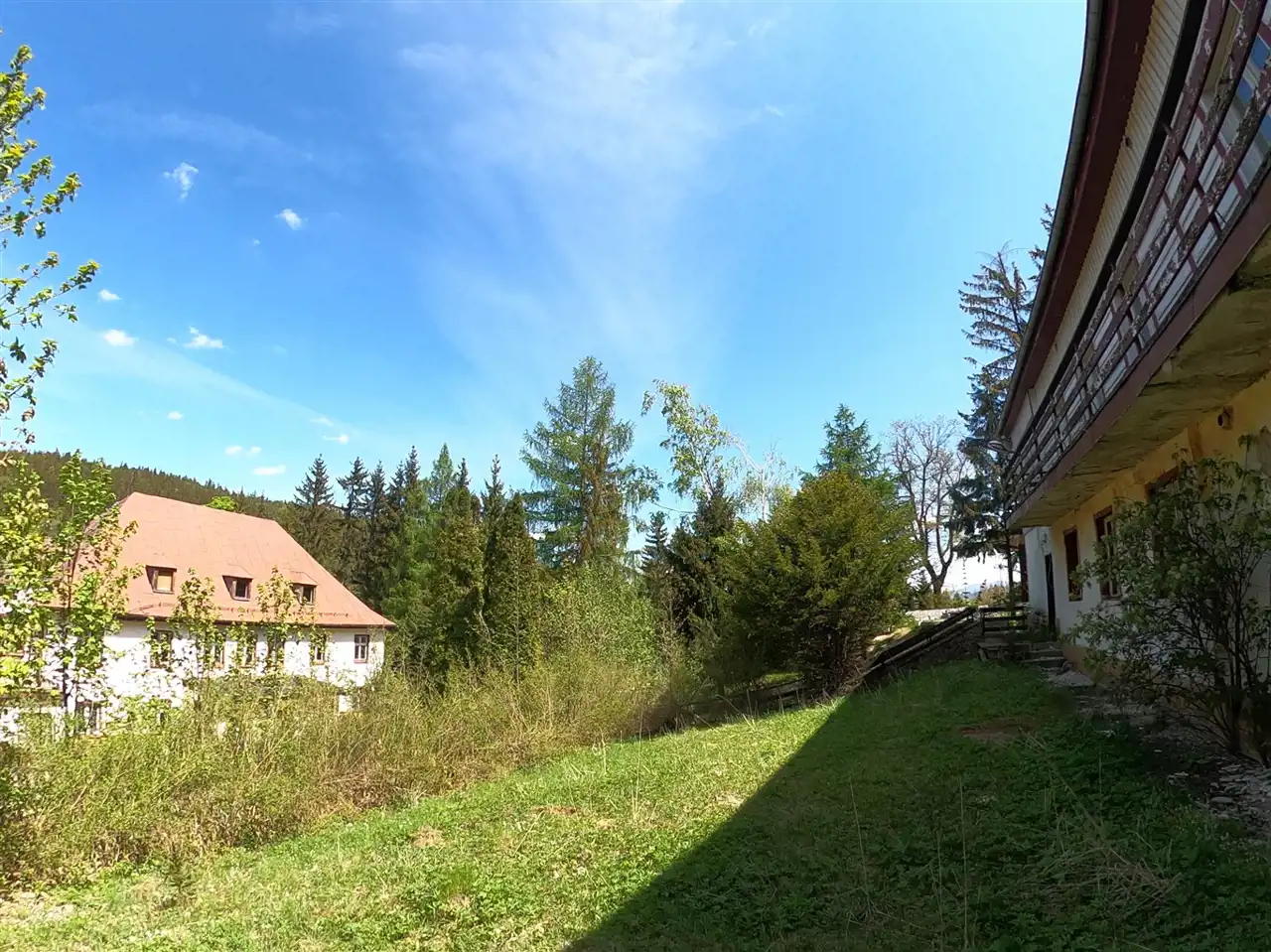 Działka o powierzchni 5399 m2 zabudowana trzema budynkami przeznaczenia turystycznego, które są w stanie do rozbiórki.