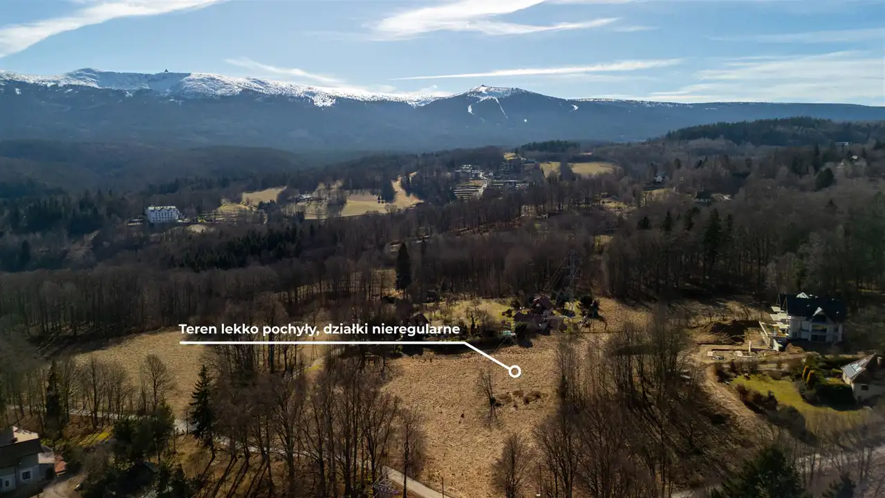 Działka ma nieregularny kształt, lekko pochylona, z przepięknym widokiem na Karkonosze.Jest to idealne miejsce do realizacji projektu domu jednorodzinnego - dla osób poszukujących ciszy, kontaktu z naturą i bliskości górskiego krajobrazu.
