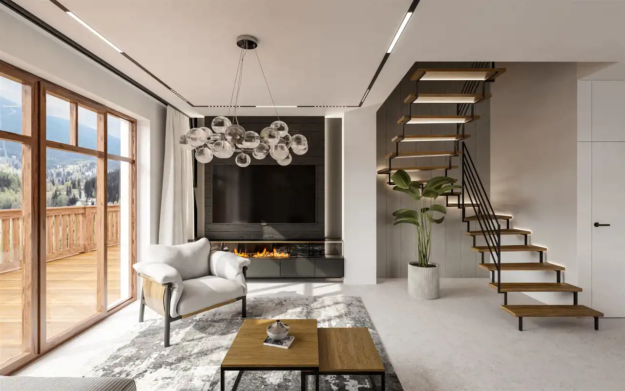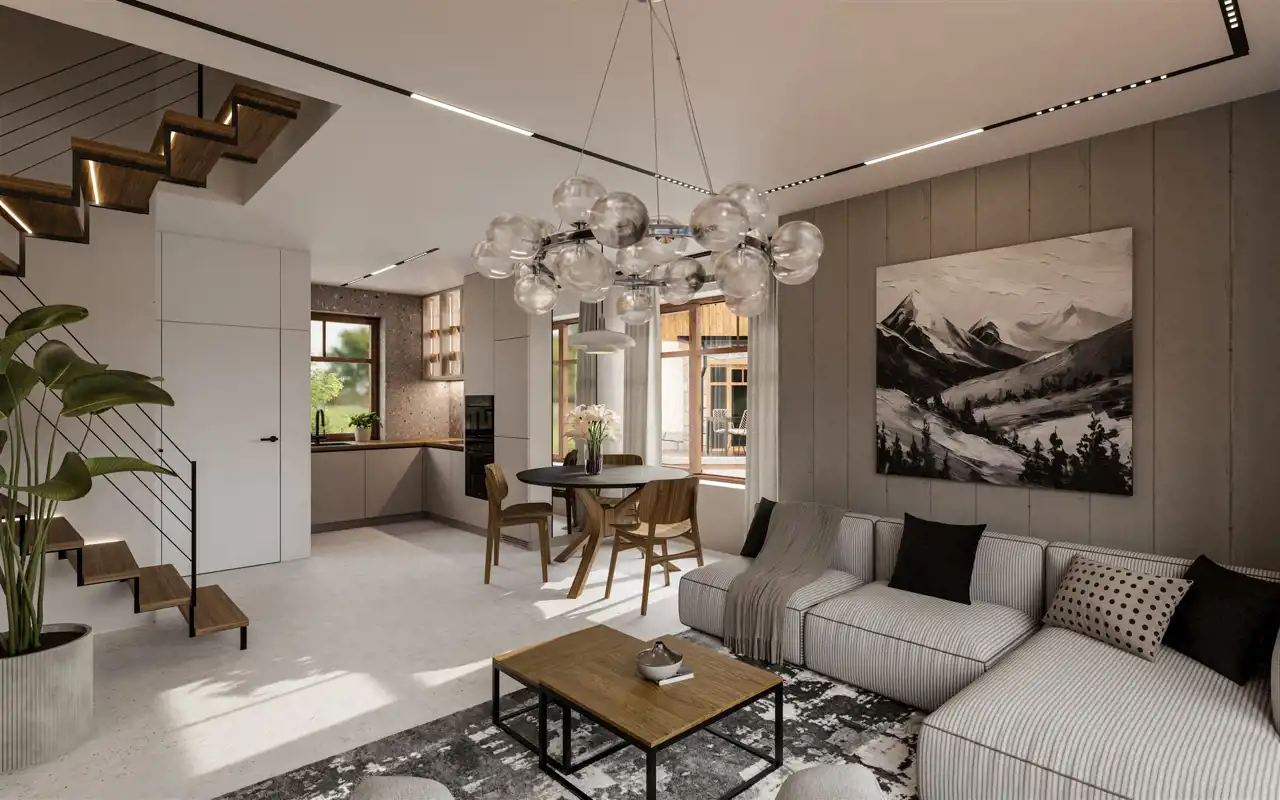Inwestycja przy ul. 1-go Maja, to kameralne miejsce stworzone z pasji, wizji i chęci wniesienia czegoś unikalnego do architektury Szklarskiej Poręby. Na działce o powierzchni ponad 4000m2 powstaje 6 domów jednorodzinnych, potocznie nazywanymi „bliźniakami”. Dwupoziomowe lokale o powierzchniach od 74 do 80m2 posiadają niezależne wejścia, liczniki, własne tarasy oraz miejsca postojowe.