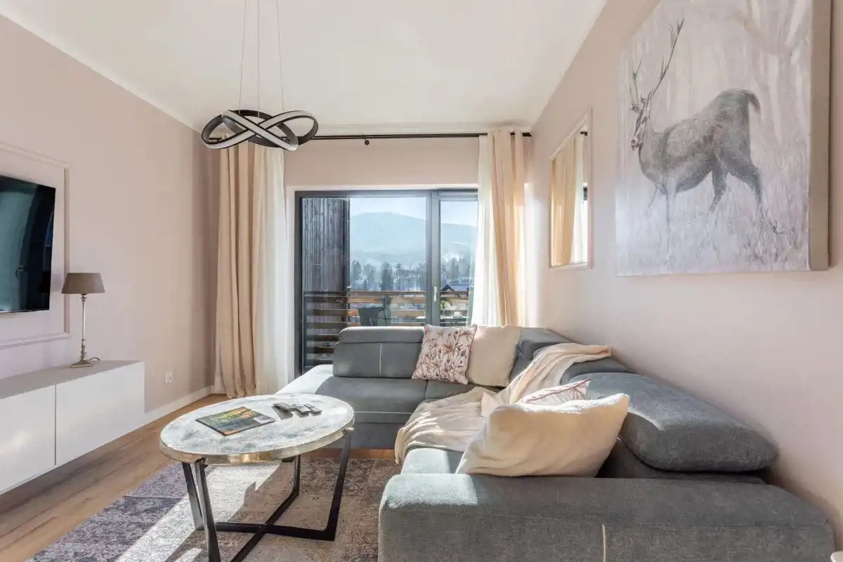 Do mieszkania przynależy duży słoneczny taras z bajecznym widokiem na góry.