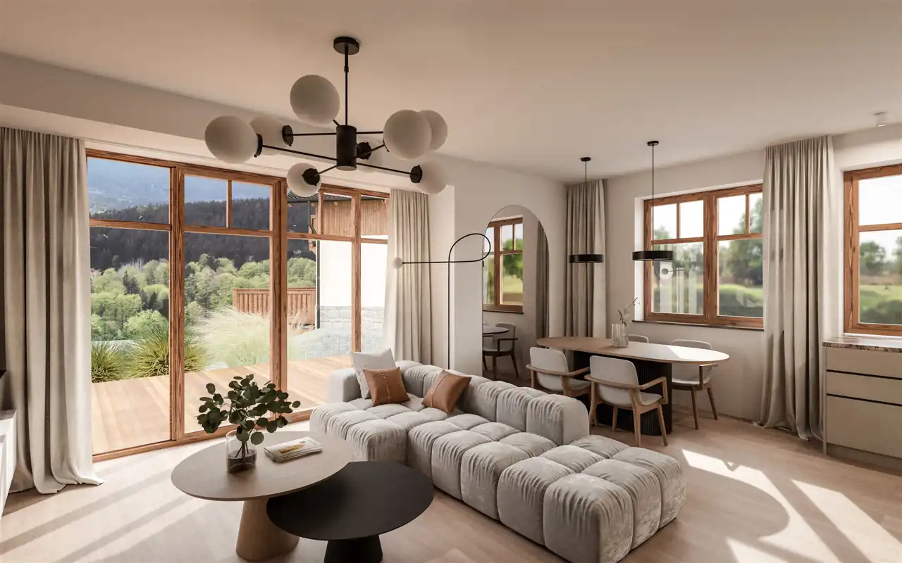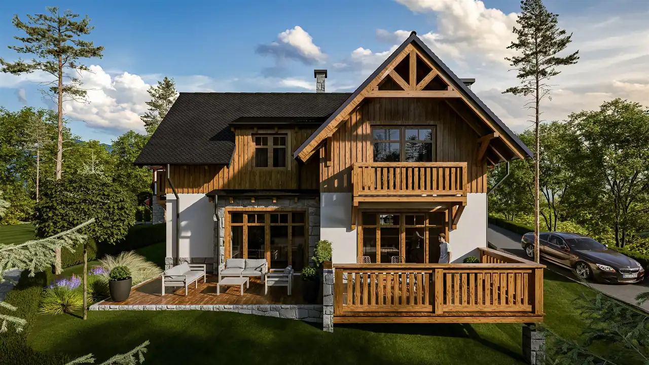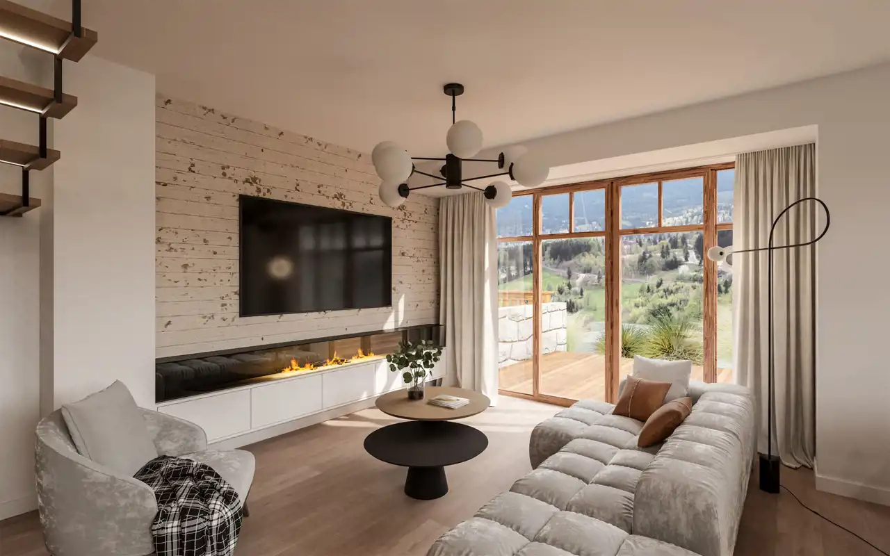 Naturalne materiały, kolorystyka, zieleń, stary drzewostan i wiele więcej - to czeka na Ciebie w miejscu spoglądającym na Śnieżne Kotły.