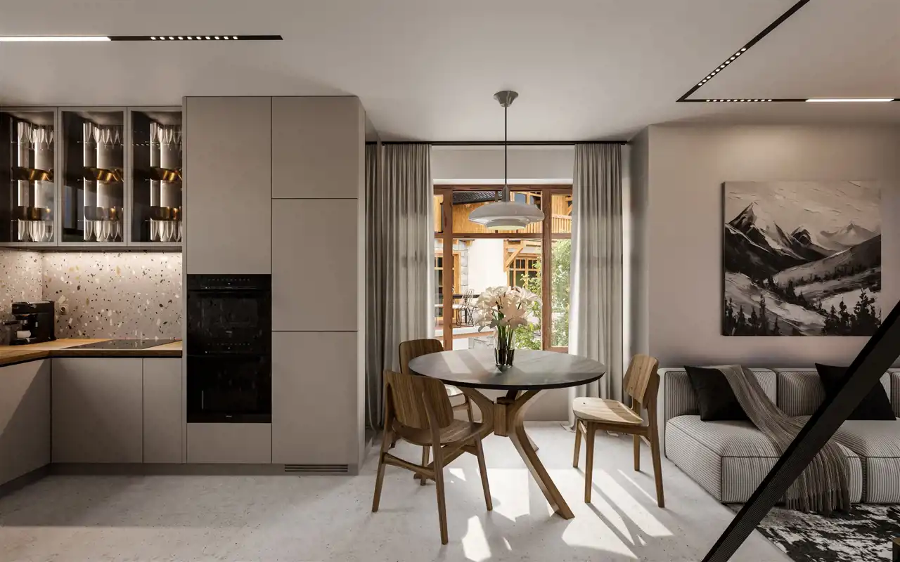 Inwestycja przy ul. 1-go Maja, to kameralne miejsce stworzone z pasji, wizji i chęci wniesienia czegoś unikalnego do architektury Szklarskiej Poręby. Na działce o powierzchni ponad 4000m2 powstaje 6 domów jednorodzinnych, potocznie nazywanymi „bliźniakami”. Dwupoziomowe lokale o powierzchniach od 74 do 80m2 posiadają niezależne wejścia, liczniki, własne tarasy oraz miejsca postojowe.