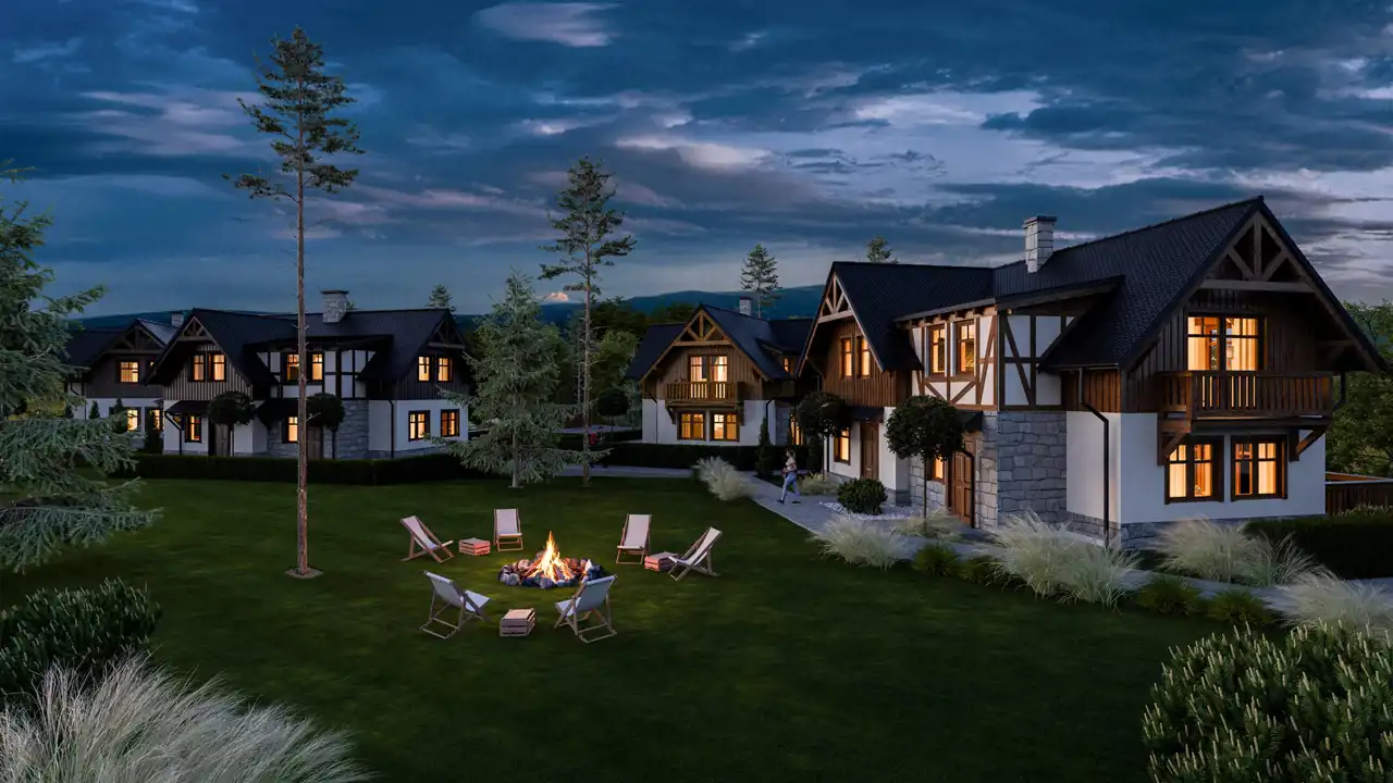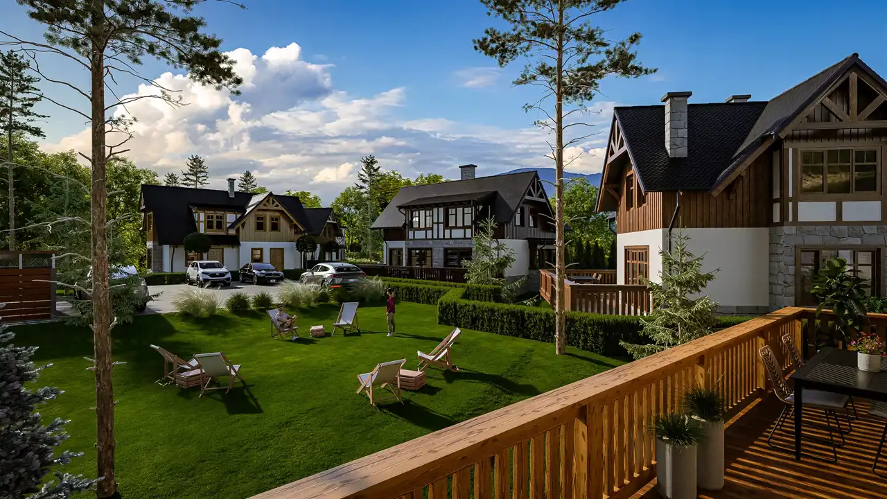 Inwestycja przy ul. 1-go Maja, to kameralne miejsce stworzone z pasji, wizji i chęci wniesienia czegoś unikalnego do architektury Szklarskiej Poręby. Na działce o powierzchni ponad 4000m2 powstaje 6 domów jednorodzinnych, potocznie nazywanymi „bliźniakami”. Dwupoziomowe lokale o powierzchniach od 74 do 80m2 posiadają niezależne wejścia, liczniki, własne tarasy oraz miejsca postojowe.