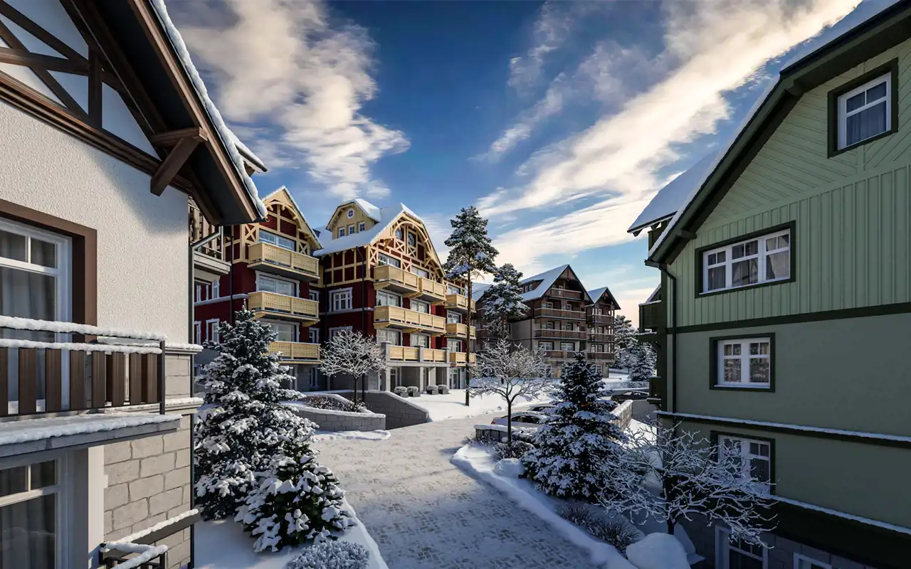 DOLINA PARK RESORT to nowa inwestycja na mapie Szklarskiej Poręby. Architektonicznie spójna, nawiązująca mocno do tradycji zabudowy Sudeckiej, a zarazem nowoczesna i podążająca za najnowszymi trendami. Wyjątkowa, kameralna i niesamowicie urokliwa Dolina Szczęścia, to miejsce gwarantujące udanie spędzony czas o każdej porze roku.