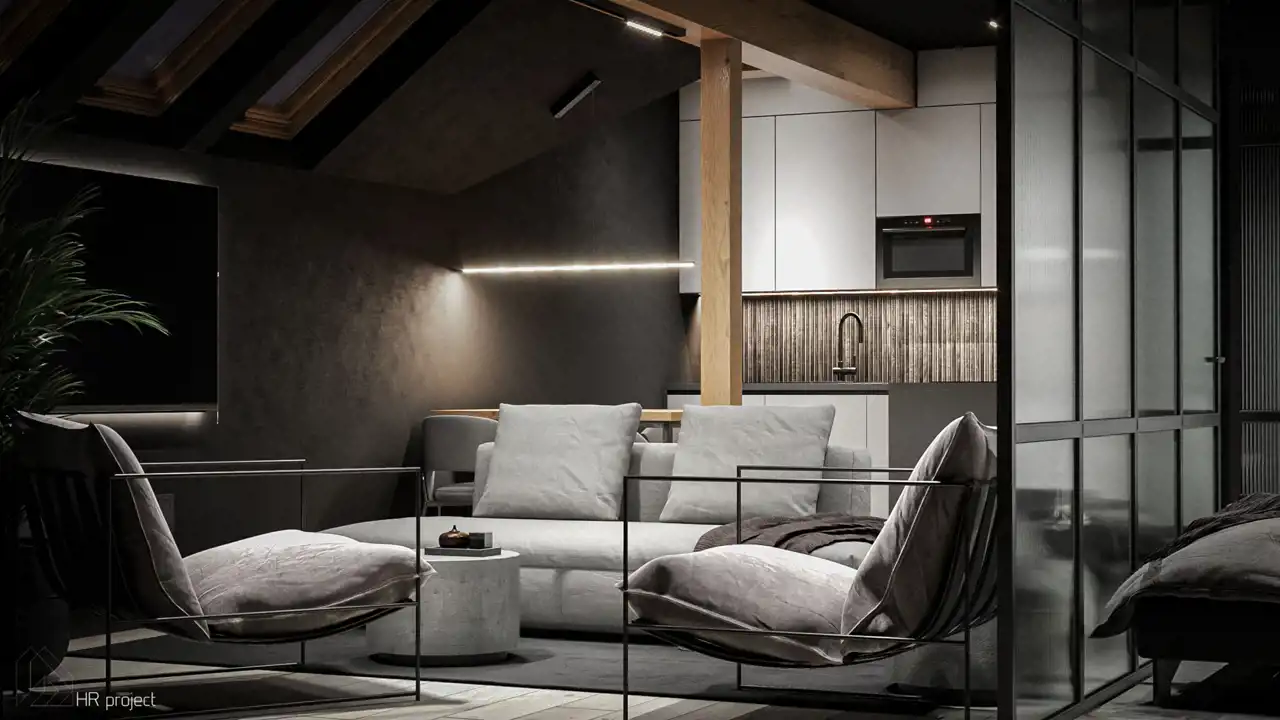 Każdy apartament posiada własny aneks kuchenny, przestronne okna zapewniające maksimum doświetlenia.