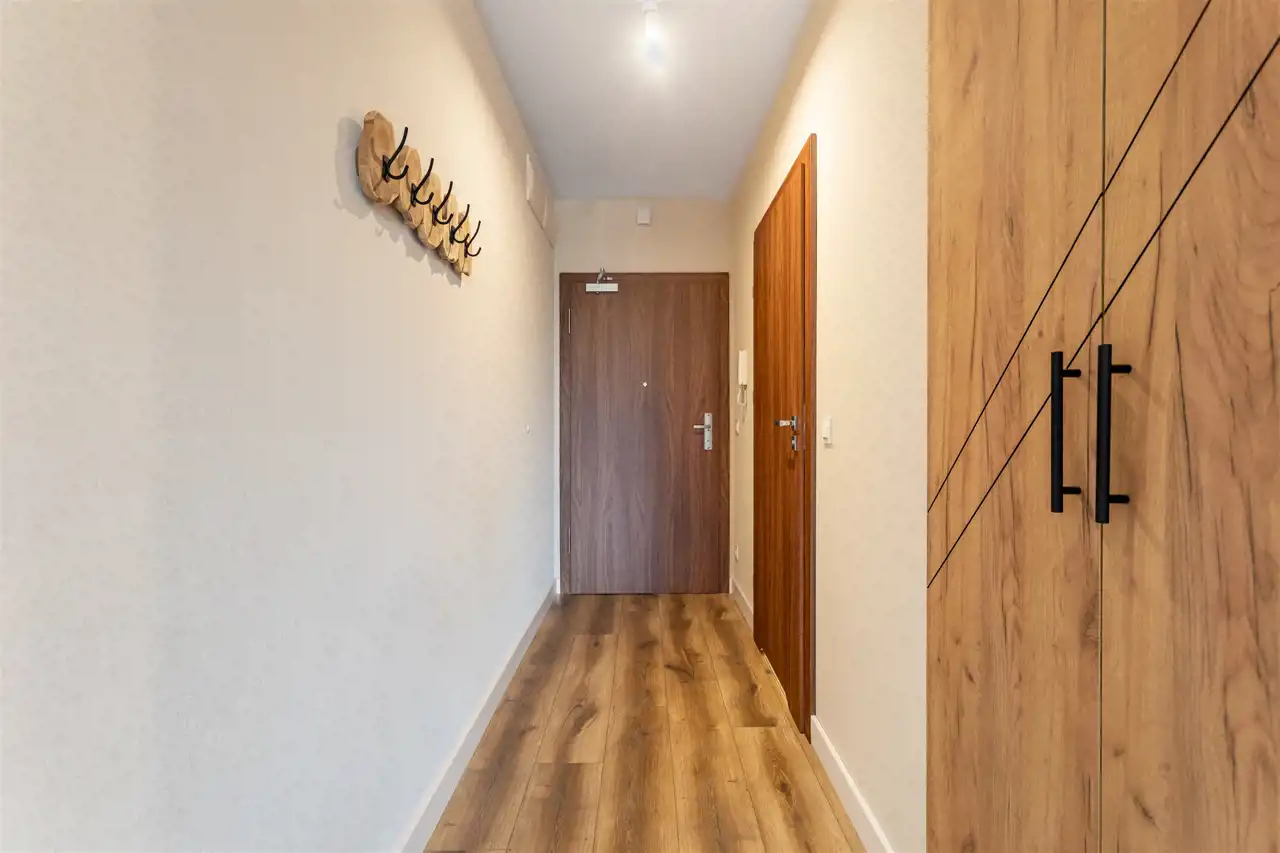 Apartament jest w pełni wykończony i przygotowany do użytkowania bez dodatkowych nakładów. To rozwiązanie, które pozwala nowemu właścicielowi od razu korzystać z lokalu lub włączyć go w ofertę wynajmu.