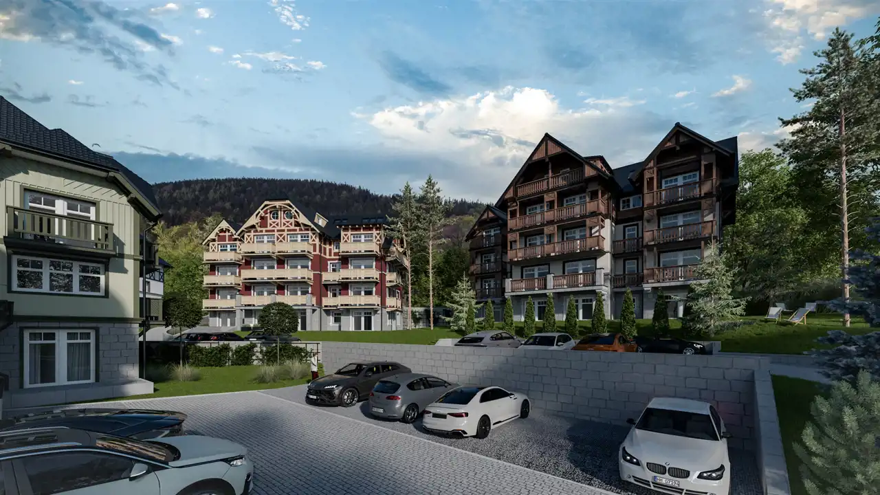 Projekt DOLINA PARK RESORT jest to kolejna inwestycja miejscowej spółki zlokalizowana jest w najbardziej kameralnej i widokowej części miasta z bajecznym widokiem na panoramę Karkonoszy.