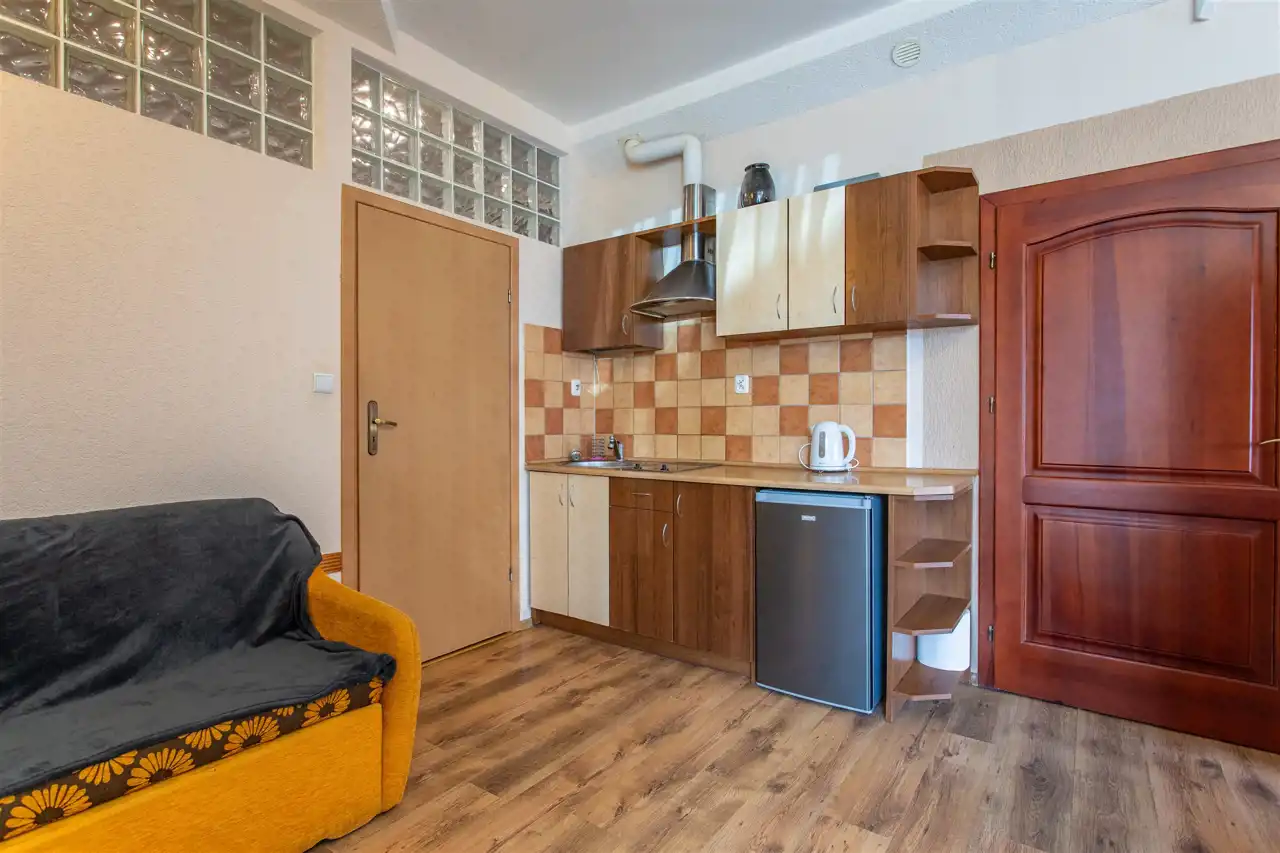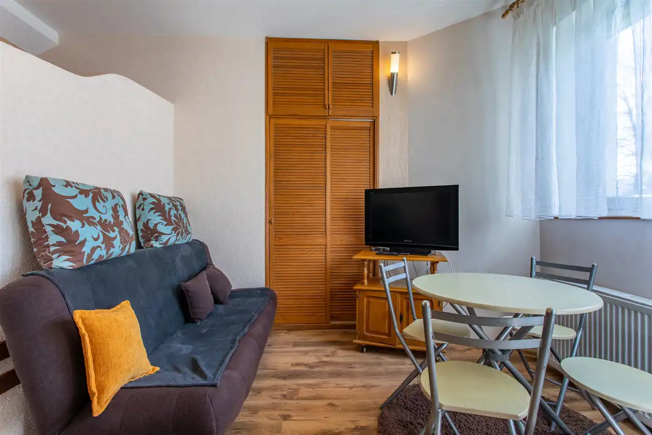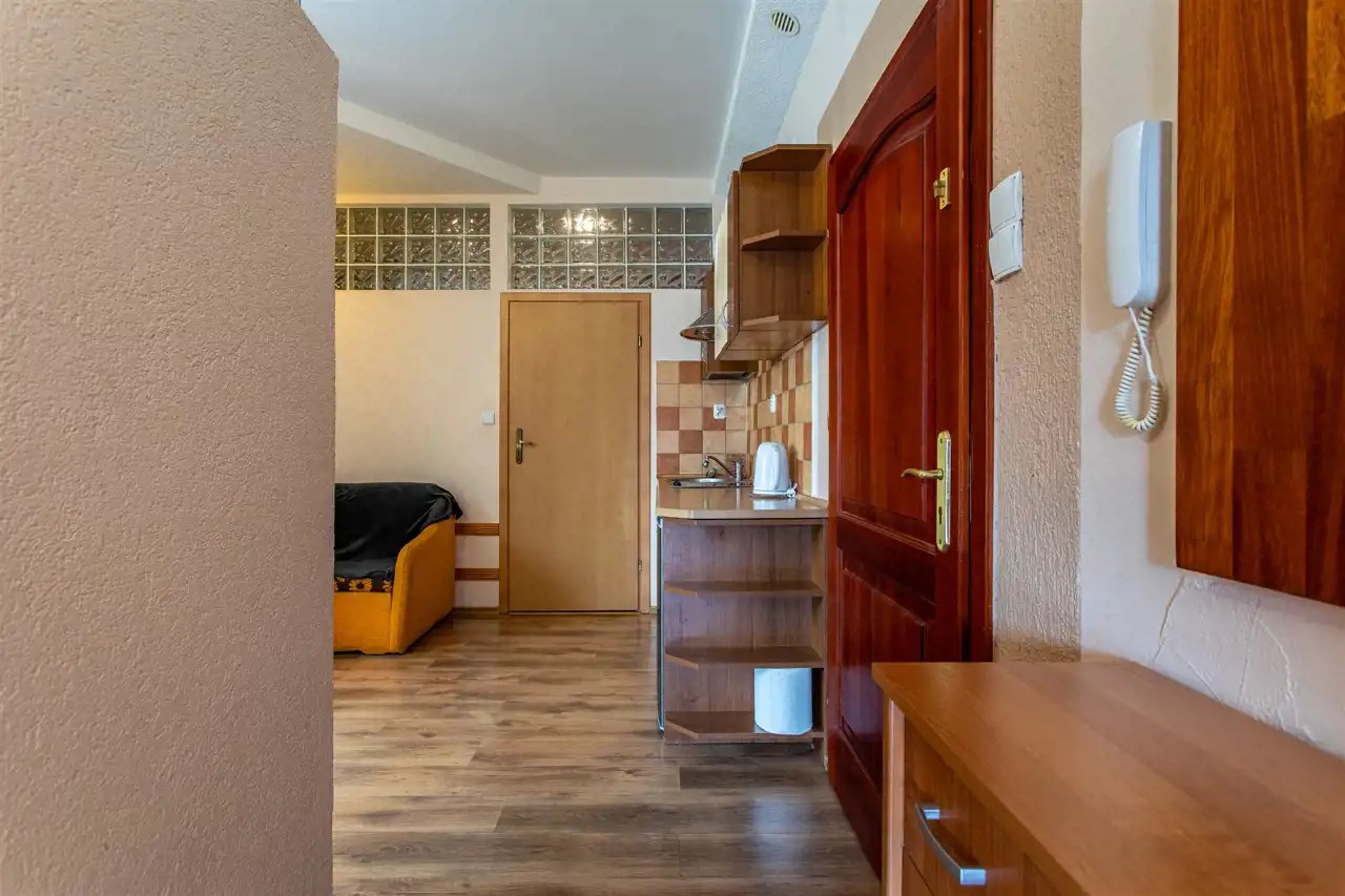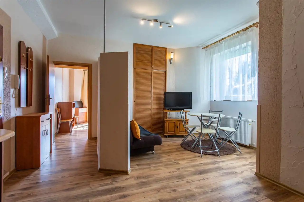 Położony w kameralnym otoczeniu, apartament składa się z przestronnego pokoju dziennego z aneksem kuchennym, funkcjonalnej łazienki oraz jasnej sypialni z dużymi oknami, które otwierają się na panoramiczny widok Karkonoszy. Przemyślany układ pozwala na elastyczną aranżację wnętrza, dostosowaną do indywidualnych potrzeb – to Ty zdecydujesz, czy ma to być nowoczesna, otwarta przestrzeń, czy przytulne wnętrze z wydzielonymi strefami.