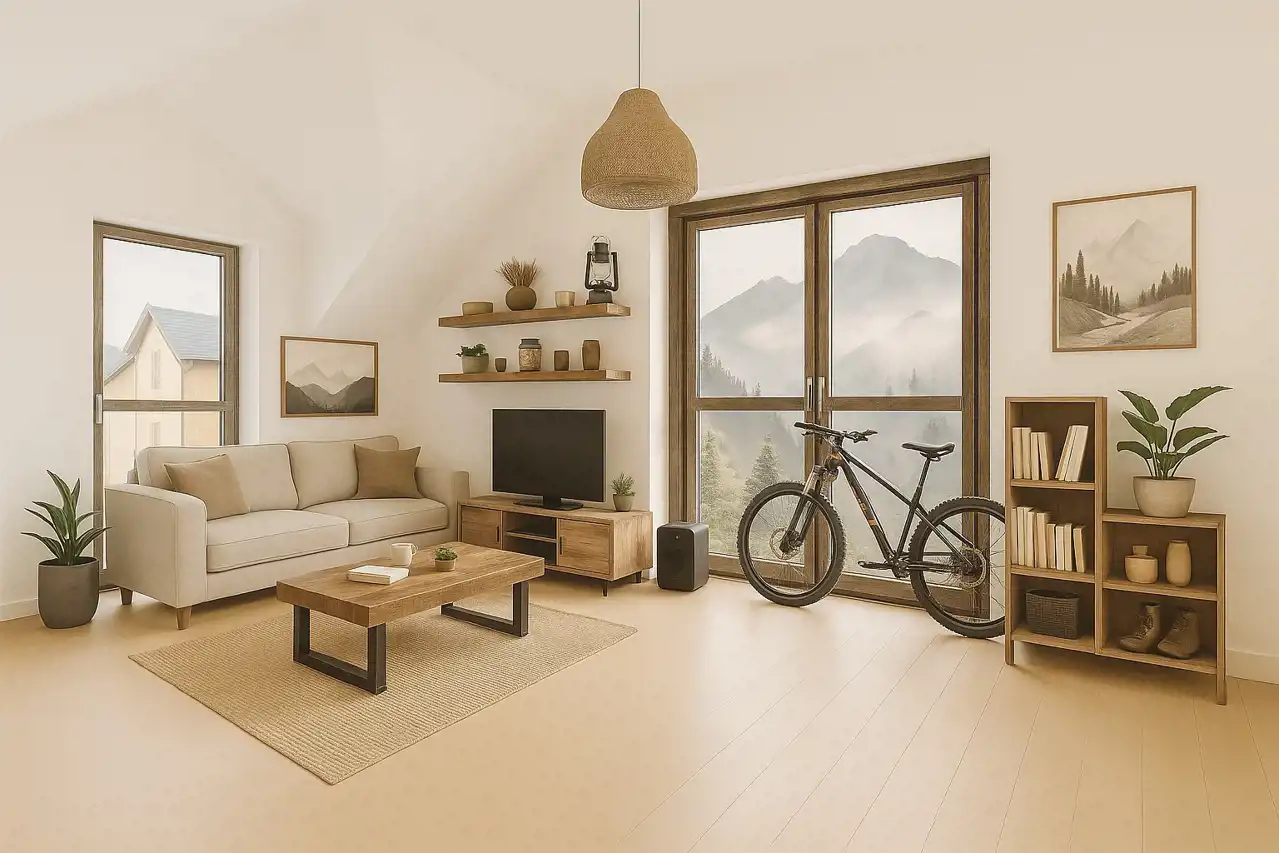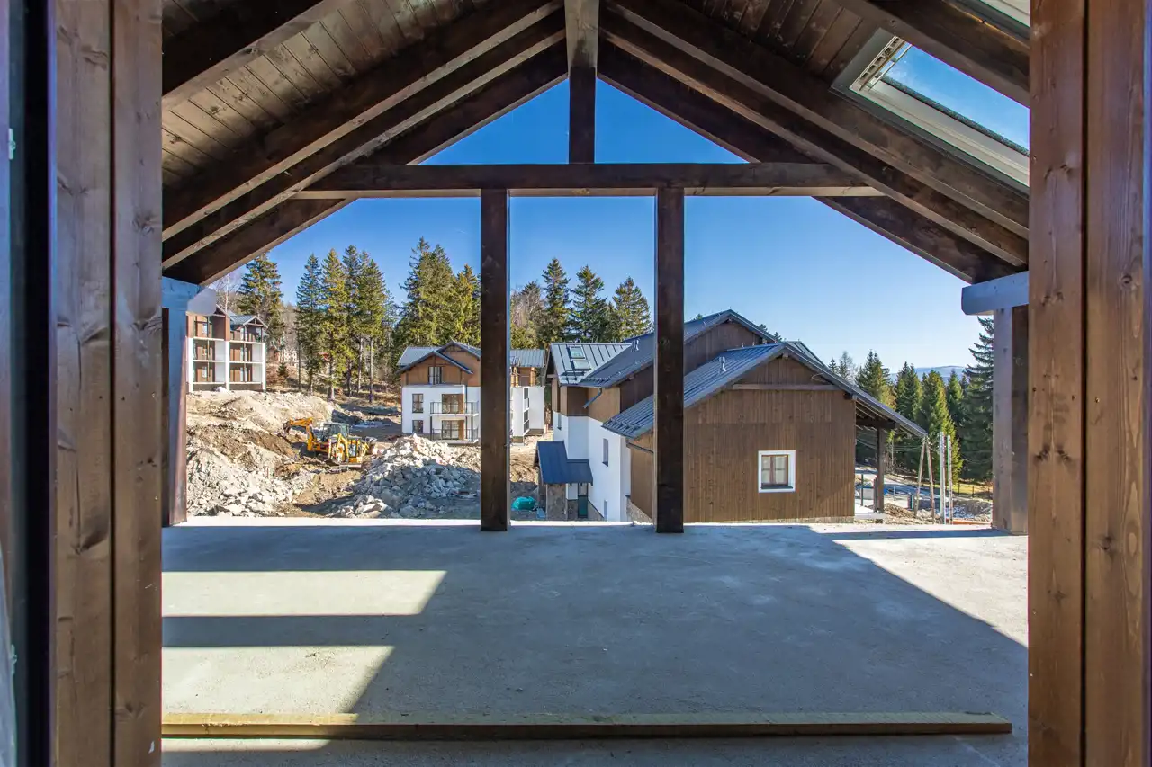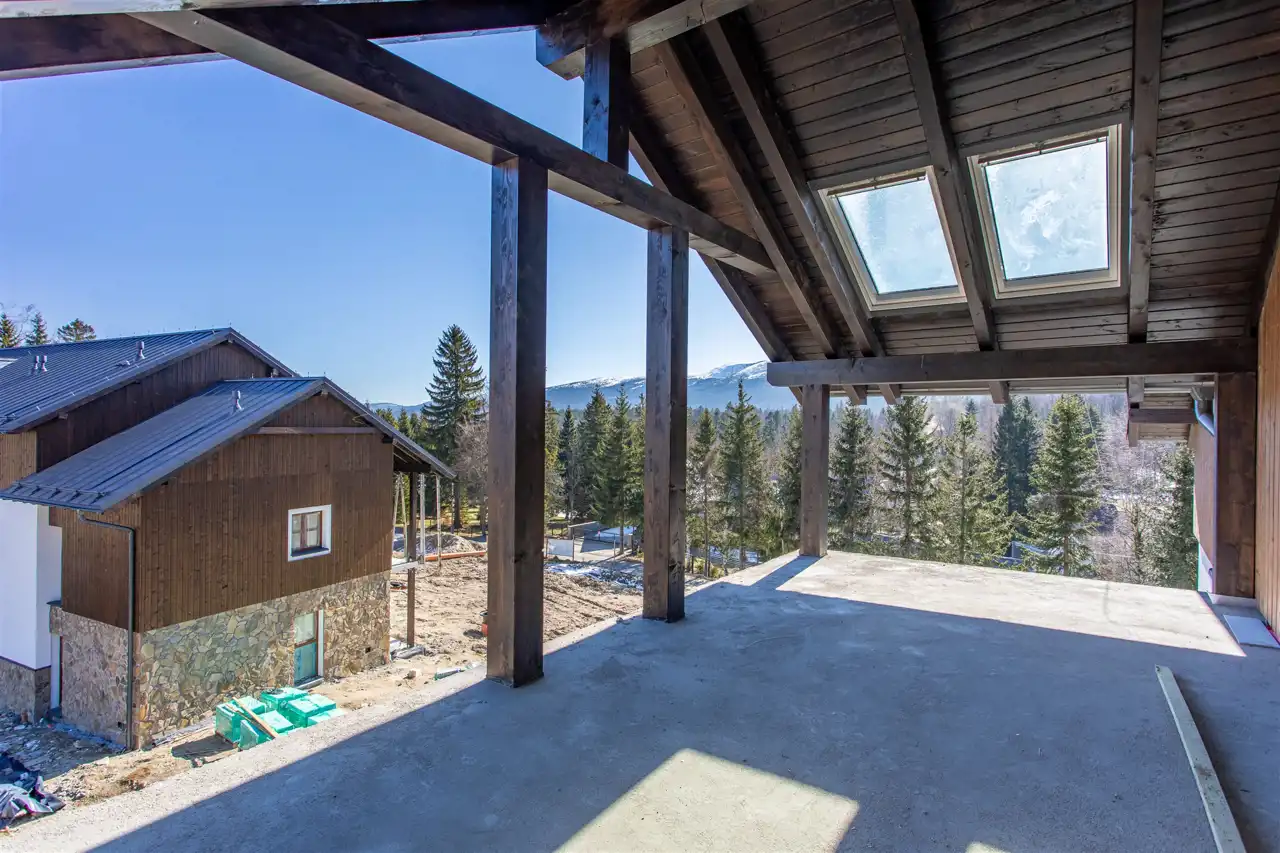 Funkcjonalnie zaprojektowane wnętrze obejmuje korytarz, dużą łazienkę oraz przestronny salon wypoczynkowy, który daje pełną swobodę aranżacji. Całość jest doskonale doświetlona, a bezpośrednie wyjście na taras o powierzchni ponad 16 m² otwiera przed Tobą zachwycający widok na panoramę Karkonoszy. Poranna kawa na świeżym powietrzu, chwila wytchnienia po dniu pełnym wrażeń, czy wieczorny odpoczynek pod gwiazdami – tutaj każdy moment nabiera wyjątkowego charakteru.