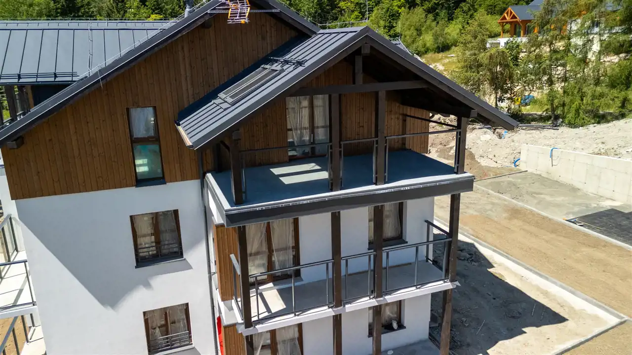 Dodatkowym atutem jest dostęp do strefy relaksu, która obejmuje naturalny basen górski, balię zewnętrzną, jacuzzi oraz saunę fińską – wszystko zaprojektowane z myślą o regeneracji po dniu pełnym górskich wrażeń. Do dyspozycji właścicieli i gości pozostaje także taras słoneczny, narciarnia, rowerownia oraz plac zabaw, które sprawiają, że każdy znajdzie tu coś dla siebie, niezależnie od pory roku.
