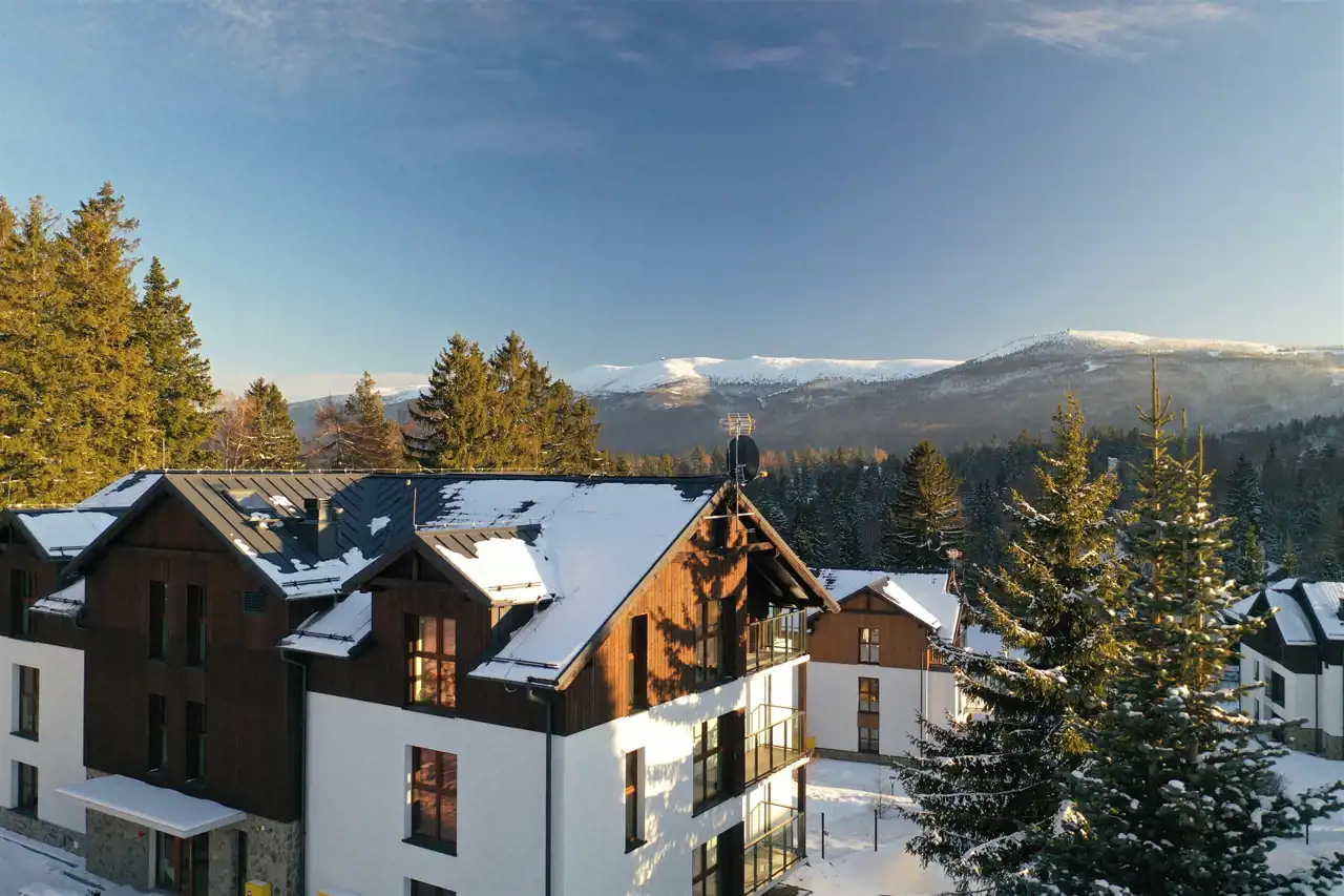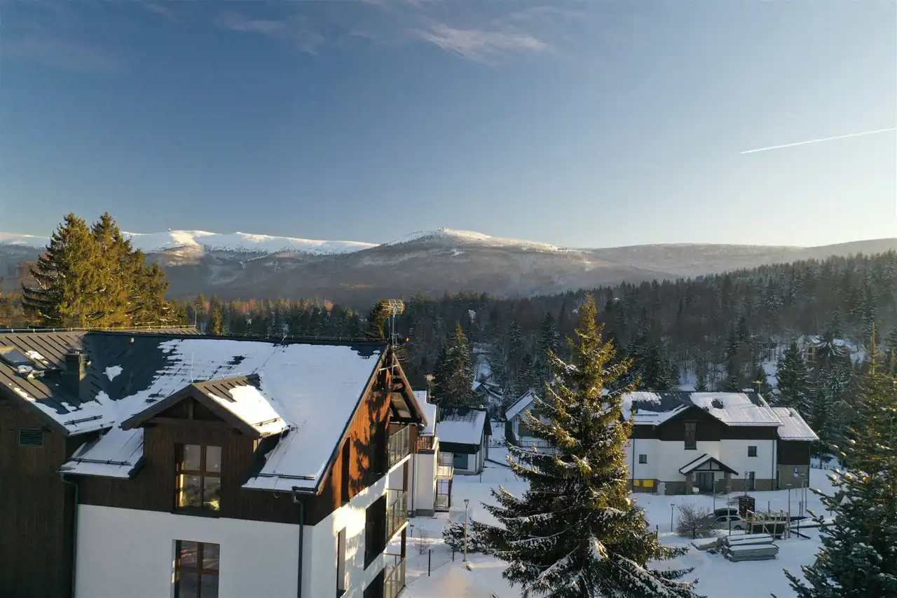 Wprost z okien rozpościera się widok na majestatyczną Szrenicę i Halę Szrenicką.