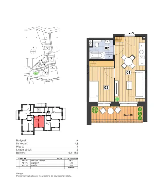 - Charakterystyka mieszkania 31.59 m2, 2 pokoje