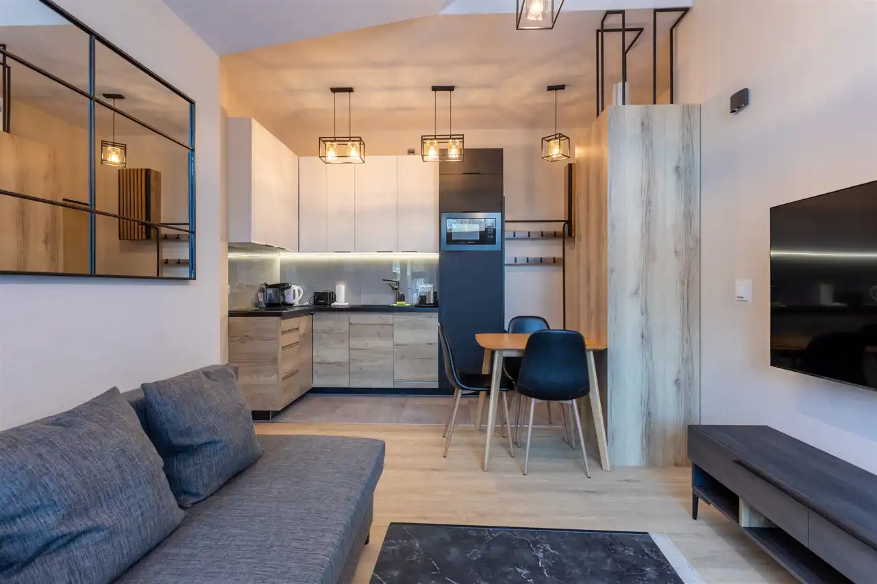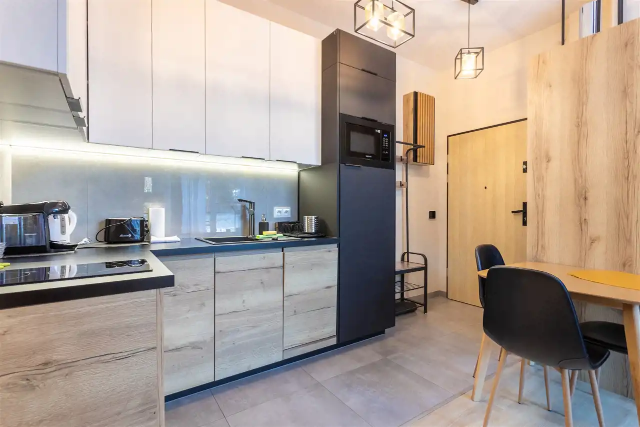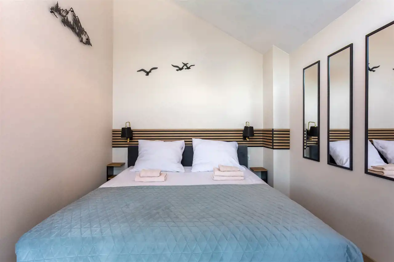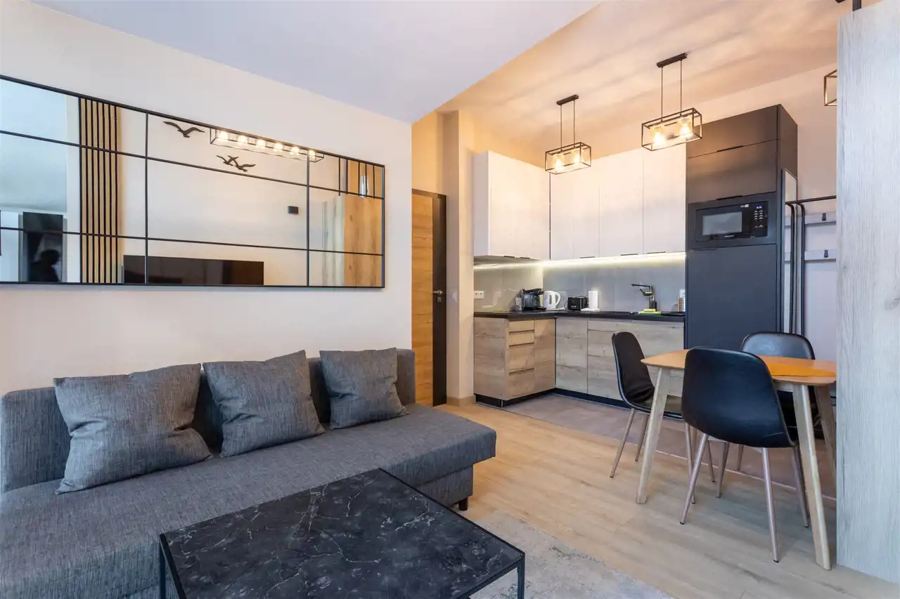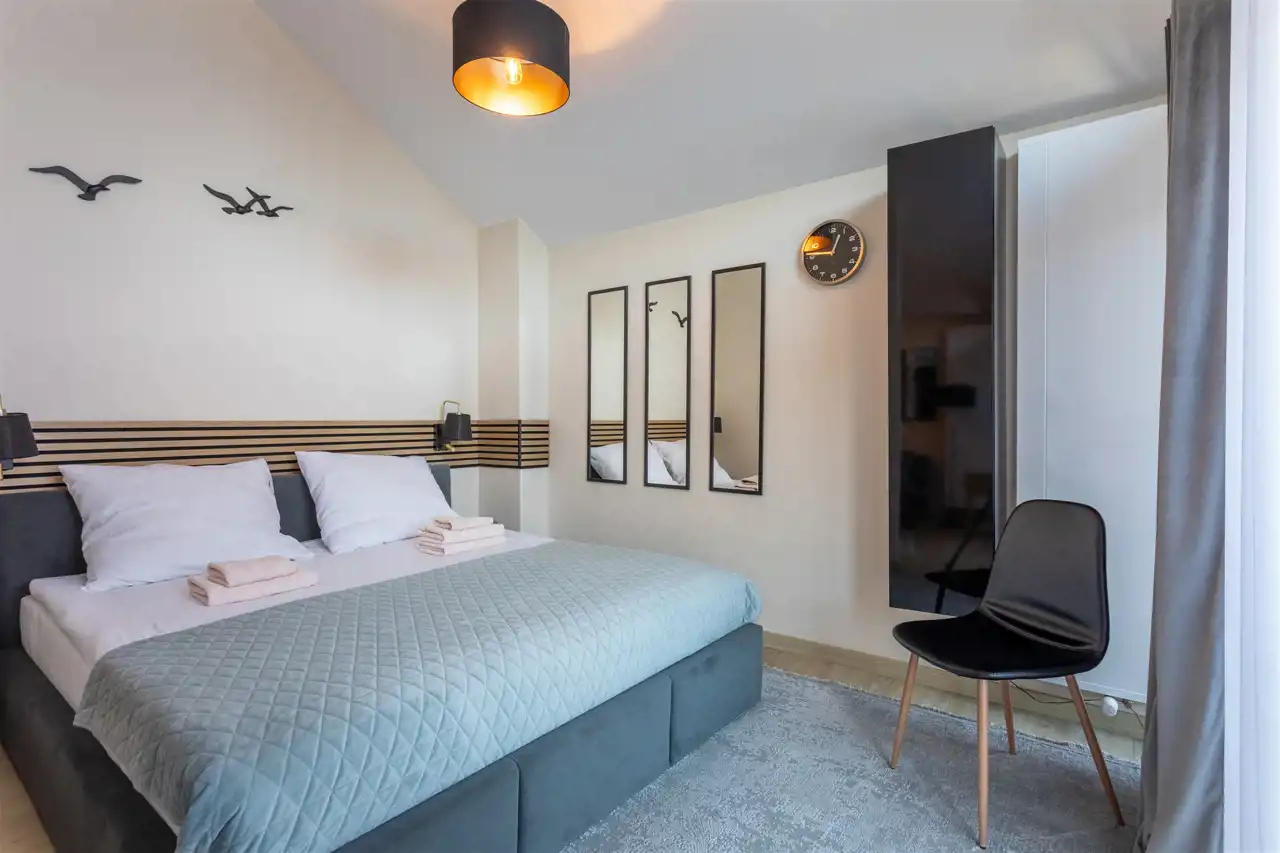 Lokal jest przystosowany do wygodnego pobytu nawet pięciu osób, co czyni go atrakcyjnym wyborem dla tych, którzy rozważają zakup w celach inwestycyjnych. Apartament jest bowiem przygotowany do wynajmu krótkoterminowego, działa na platformie Booking.com i może pochwalić się bardzo wysokimi ocenami gości, co pozwala kontynuować wynajem bez konieczności budowania oferty od podstaw.