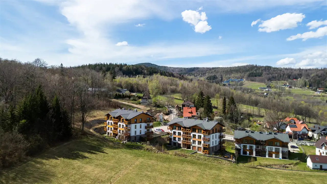 Lokalizacja przy ul. Waryńskiego to gwarancja ciszy i kontaktu z naturą, a jednocześnie świetna baza wypadowa. W najbliższej okolicy znajdują się liczne szlaki piesze i rowerowe, plac zabaw, boisko sportowe, a spacerem w kilka minut dotrzesz do Chybotka i Złotego Widoku - miejsc, które zachwycają turystów z całej Polski i zagranicy.
