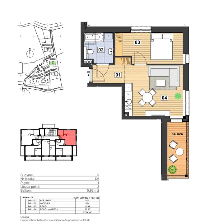 - Charakterystyka mieszkania 37.34 m2, 2 pokoje