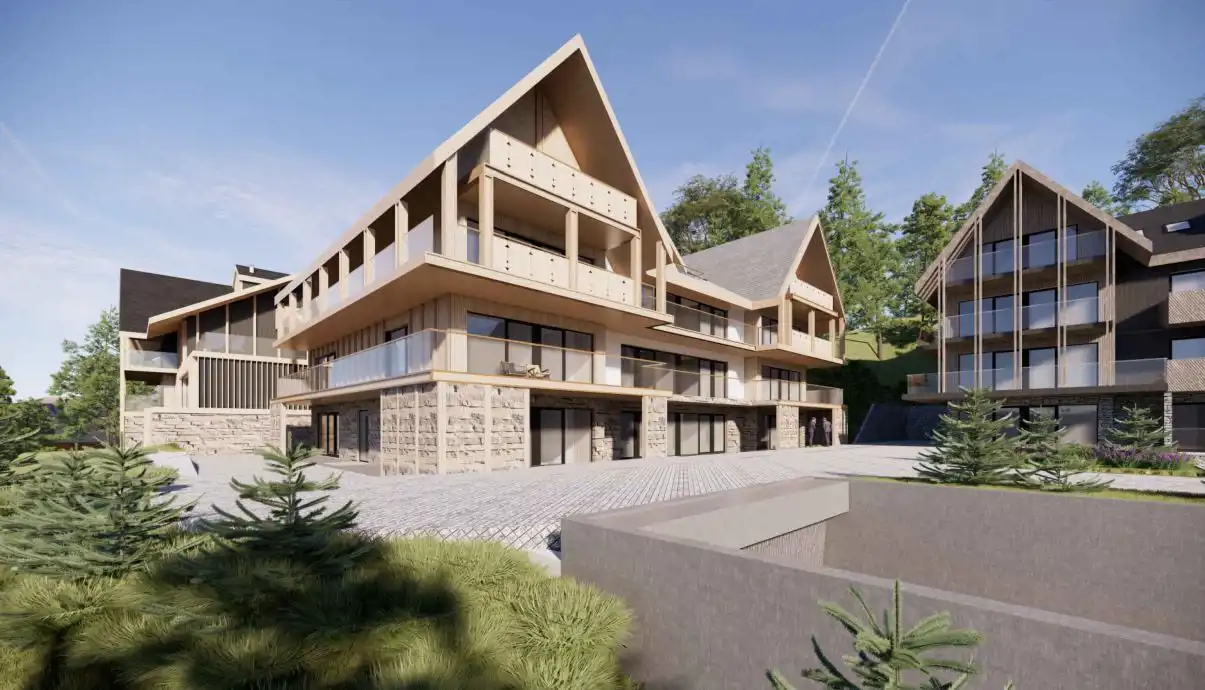 Architektura idealnie wpisuje się w charakter inwestycji. Budynki realizowane są w typowym dla górskich kurortów klimacie. Łączą ze sobą elementy tradycji i nowoczesności. Spadzisty dach, elementy drewna i kamienia na elewacji zestawiono tu ze szklanymi balustradami i nowoczesnymi częściami wspólnymi. Inwestycja swoją formą wzorowo wpisuje się w otaczającą ją przyrodę dając jej wciąż odgrywać pierwszą rolę w tym wyjątkowym miejscu.