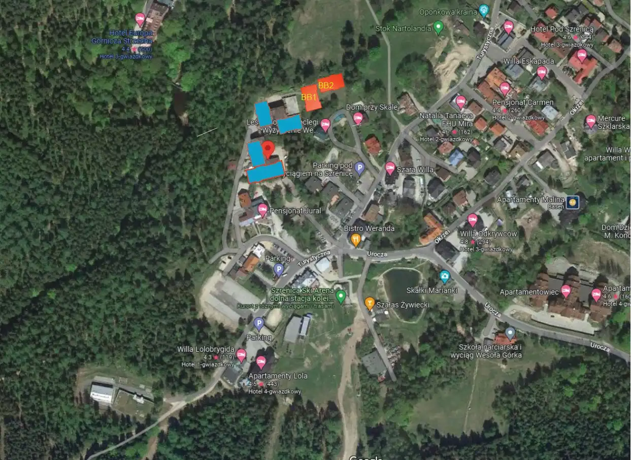 Doskonała lokalizacja w odległości 300m od stoku SKI Arena Szrenica oraz w otoczeniu Karkonoskiego Parku Narodowego, z którego można udać się min. na Wodospad Kamieńczyk czy do Schroniska pod Łabskim Szczytem.