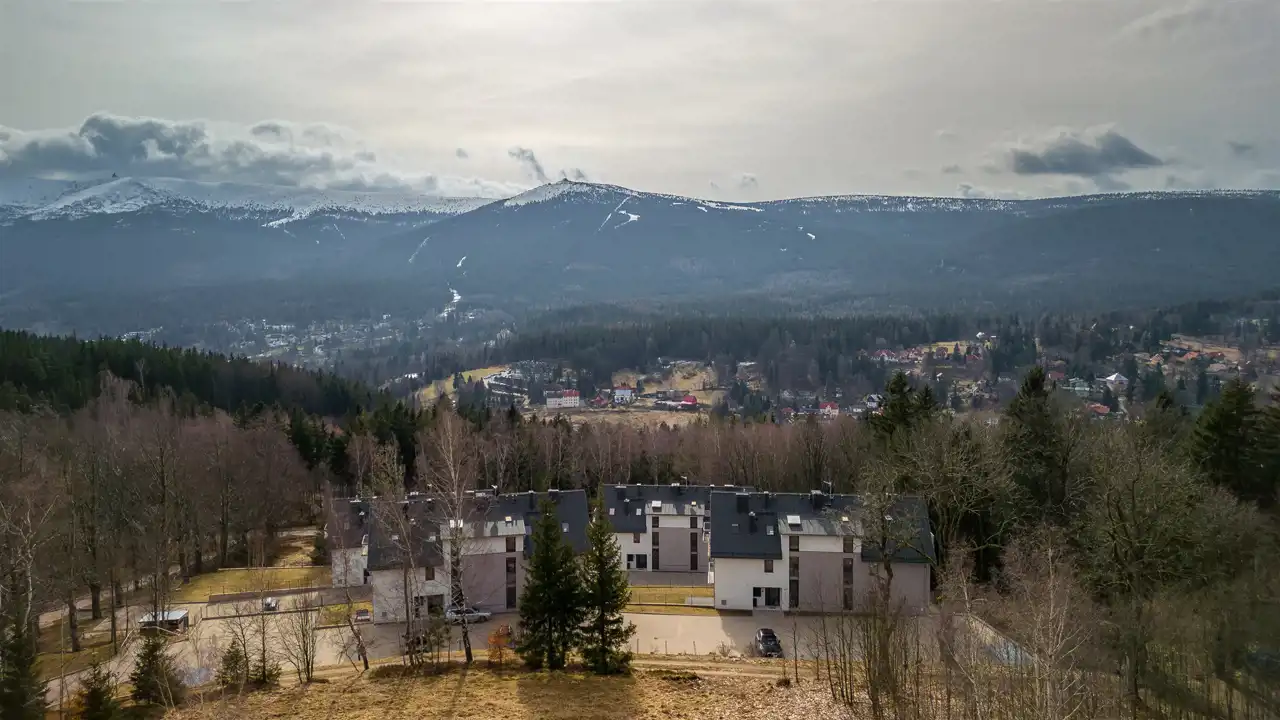 Lokal o powierzchni użytkowej 45m2, zlokalizowany na pierwszej kondygnacji. Duże przeszklenia w pokoju dziennym gwarantują słońce i przepiękny widok o każdej porze dnia. Na bardzo duży i przestronny taras jest wyjście od strony południowej. Daje to ogromny komfort, a widok na Szrenicę, który dosłownie wchodzi do środka apartamenty przez duże przeszklenia, wywołuje uśmiech o każdej porze roku.