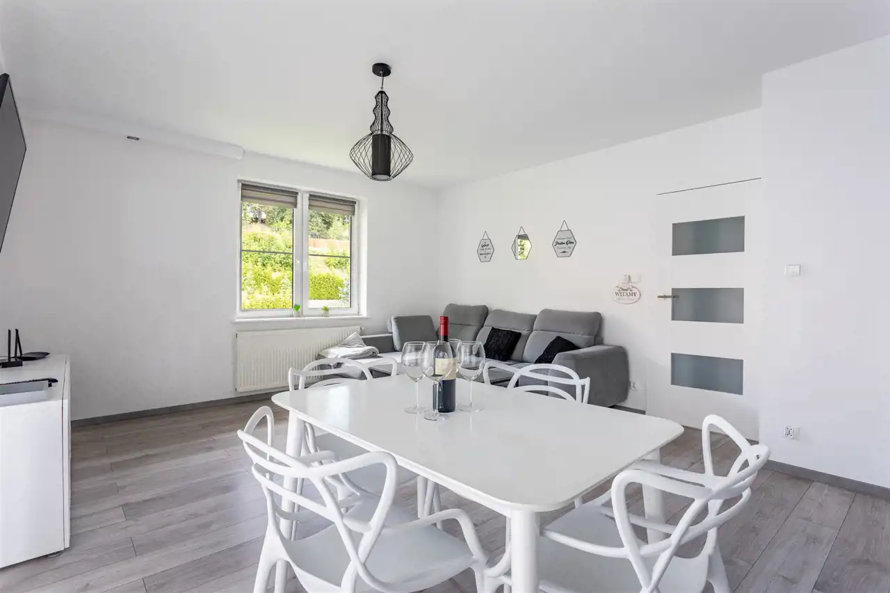 W najbliższym otoczeniu dostępna jest pełna infrastruktura - sklepy, restauracje, stadion sportowy, informacja turystyczna oraz wszystkie niezbędne usługi. To lokalizacja, która pozwala funkcjonować bez samochodu, a jednocześnie stanowi świetną bazę wypadową na szlaki i atrakcje regionu.