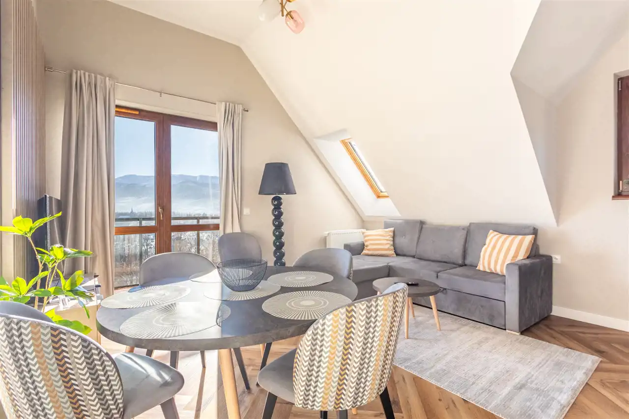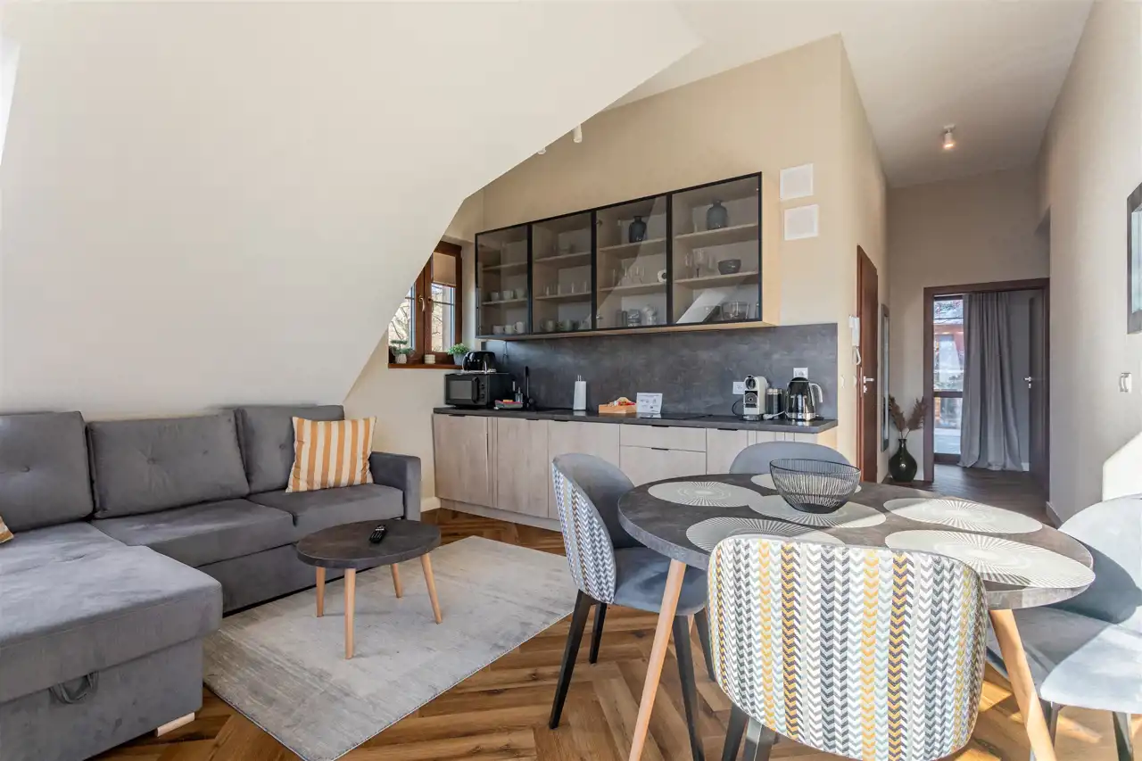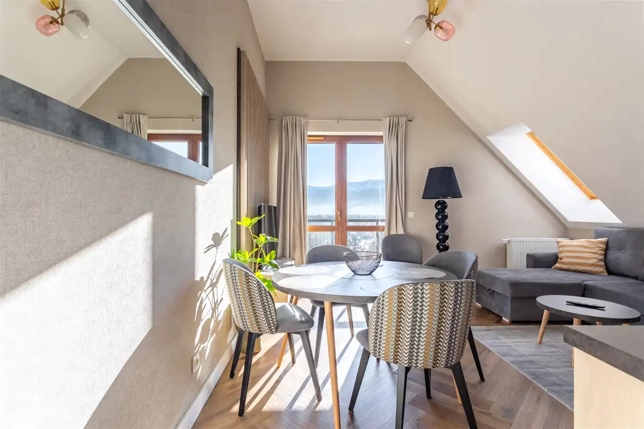 Przedmiotem sprzedaży jest gotowy, niespełna 40 metrowy apartament w kompleksie Green Park Resort. Lokal położony na trzecim piętrze, składający się z salonu z aneksem kuchennym, sypialni, łazienki, przedpokoju oraz balkonu z widokiem na Szrenicę. Apartament jest całkowicie wykończony i wyposażony z zachowaniem wysokich standardów jakościowych zarówno wykończenia jak i wyposażenia.