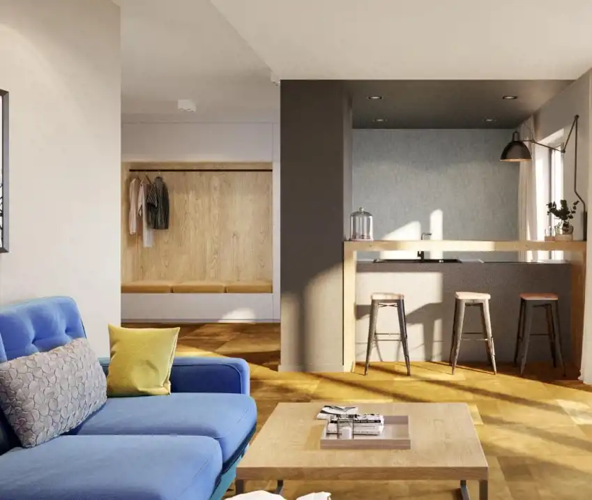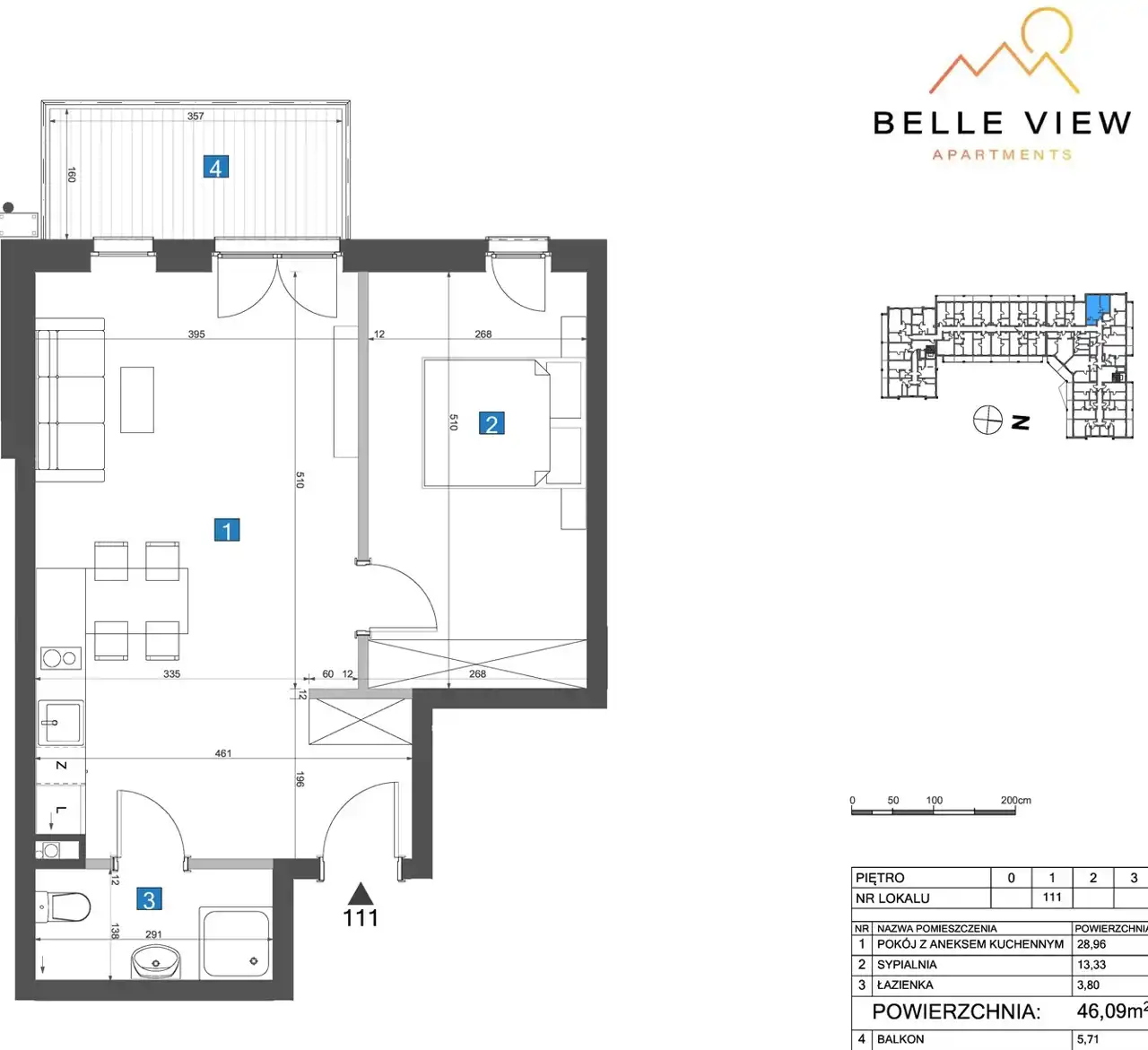 - Charakterystyka mieszkania 46.42 m2, 2 pokoje