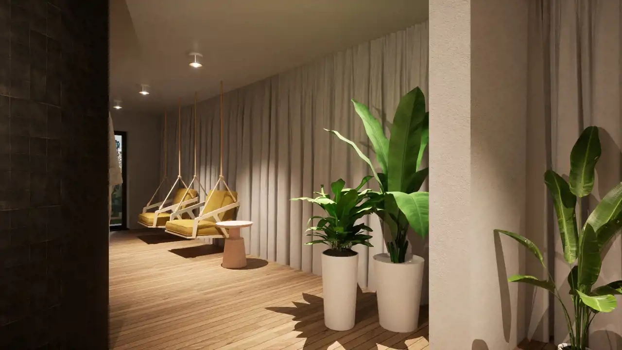 W budynku zaprojektowana jest część SPA w którą wchodzą sauny suche, jacuzzi, przebieralnie ponadto w budynku zaprojektowany jest PLAY Room dla najmłodszych.